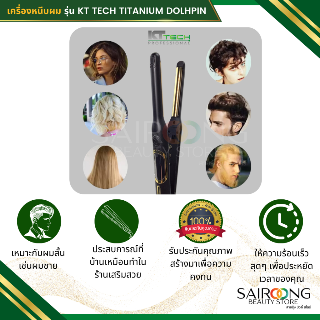 [มีส่งด่วน มีมอก.] เครื่องหนีบผมสั้น KT TECH รุ่น TITANIUM DOLHPIN ความร้อนสูง 230° เครื่องหนีบผมตะเกียบ