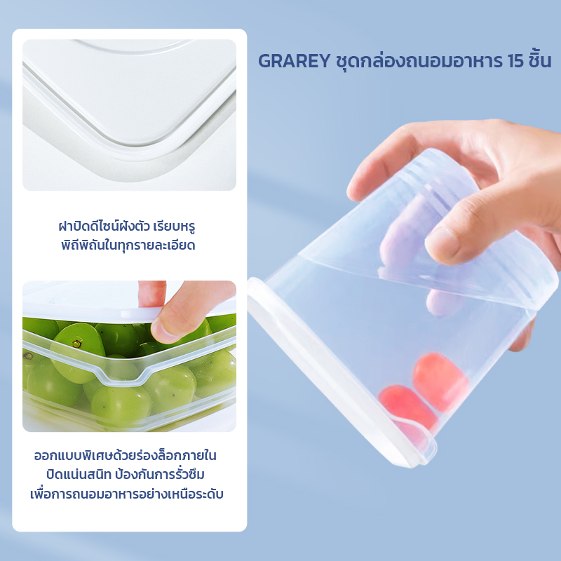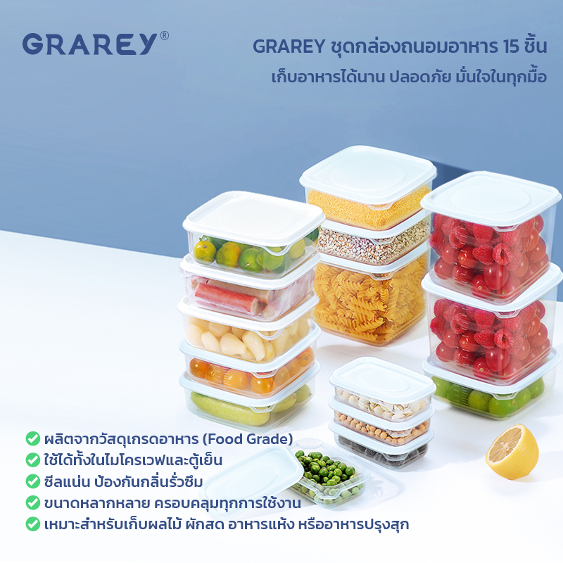 GRAREY กล่องใส่ถนอมอาหาร เข้าไมโครเวฟได้ชุด15กล่อง ป้องกันแบคทีเรีย ป้องกันความชื้น FoodContainerBox
