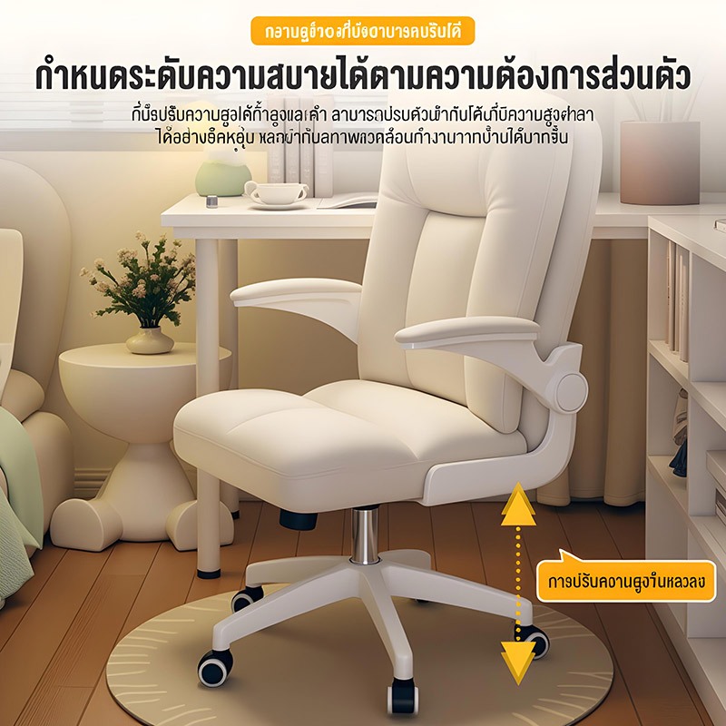 เก้าอี้สำนักงาน สไตล์โมเดิร์น เก้าอี้ทำงาน พร้อมที่วางแขนและหมอน เก้าอี้มีล้อ ปรับความสูงได้ เก้าอี้