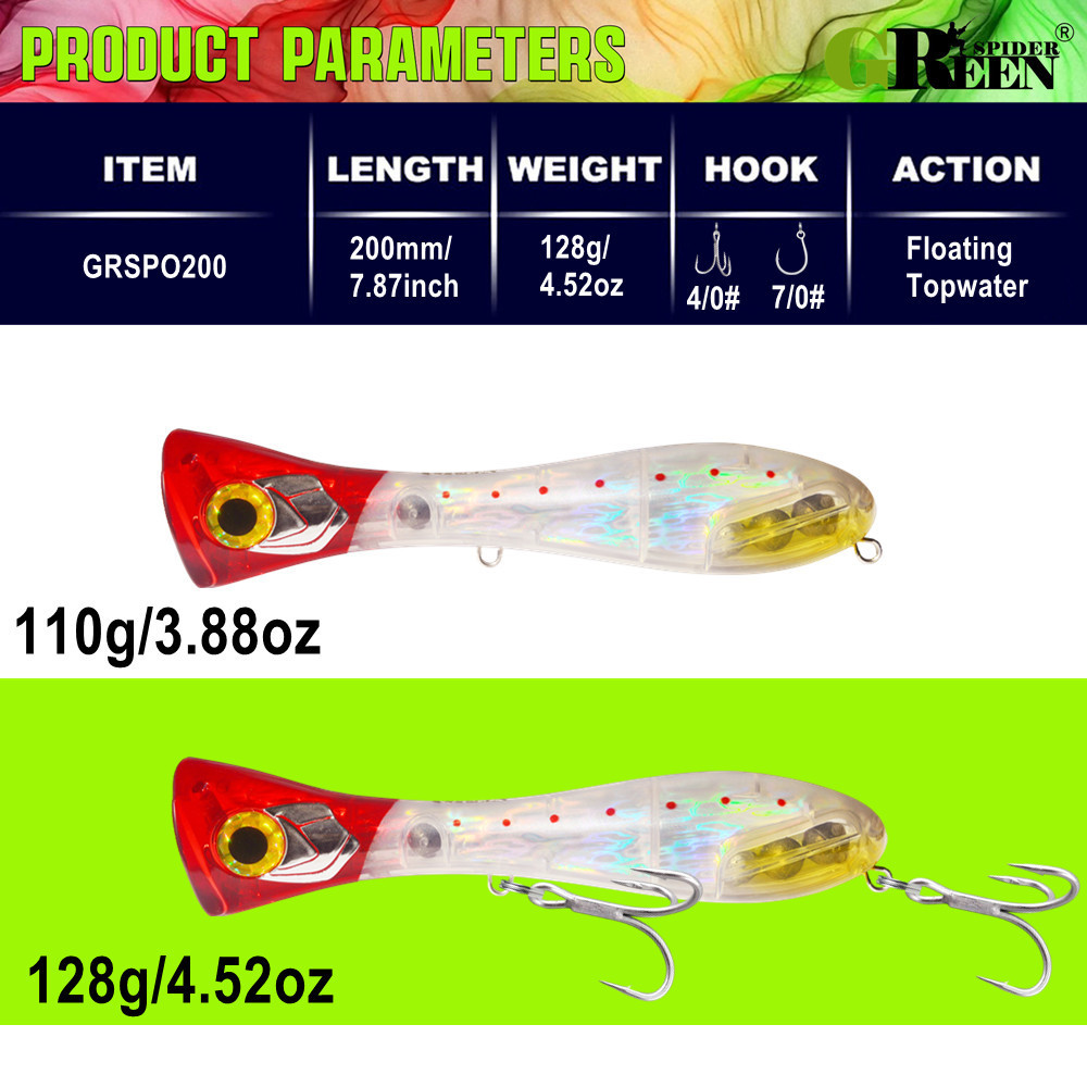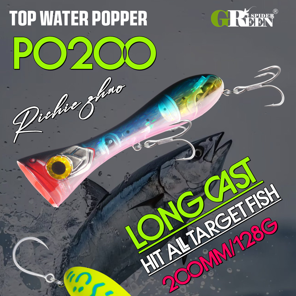 GREENSPIDER ใหม่ UV Popper Fishing Lure 200 มม.128g Topwater Big Spalsh Wobber เสริมประดิษฐ์ Hard เหยื่อ GT ทูน่าเหยื่อตกปลา