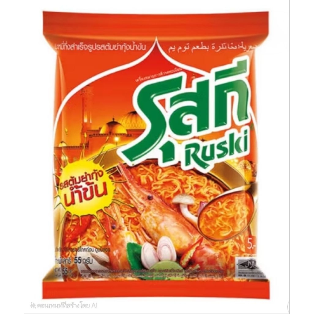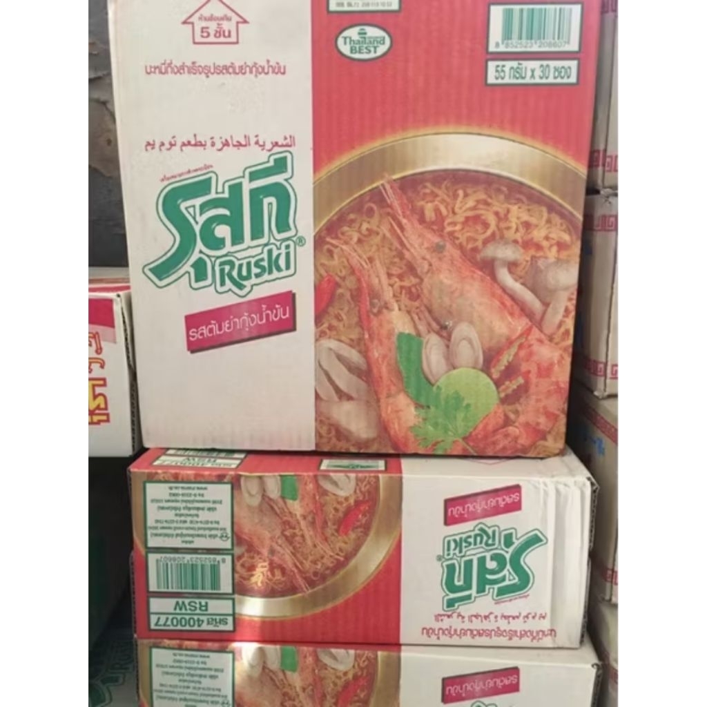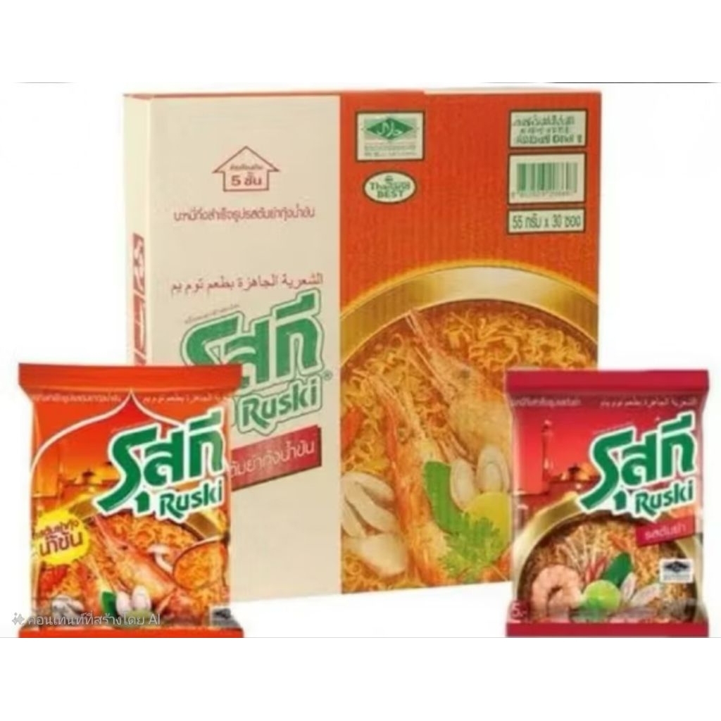 บะหมี่รุสกี กึ่งสำเร็จรูปรสต้มยำกุ้งน้ำขน 1กล่อง 30 ซอง