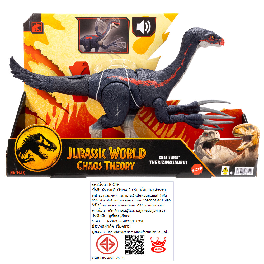 Jurassic World Slash N Roar Therizinosaurus Figure, Attack & Sound จูราสิคเวิล์ด ไดโนเสาร์ เทอริซิโนซอรัส มีเสียง JCG16