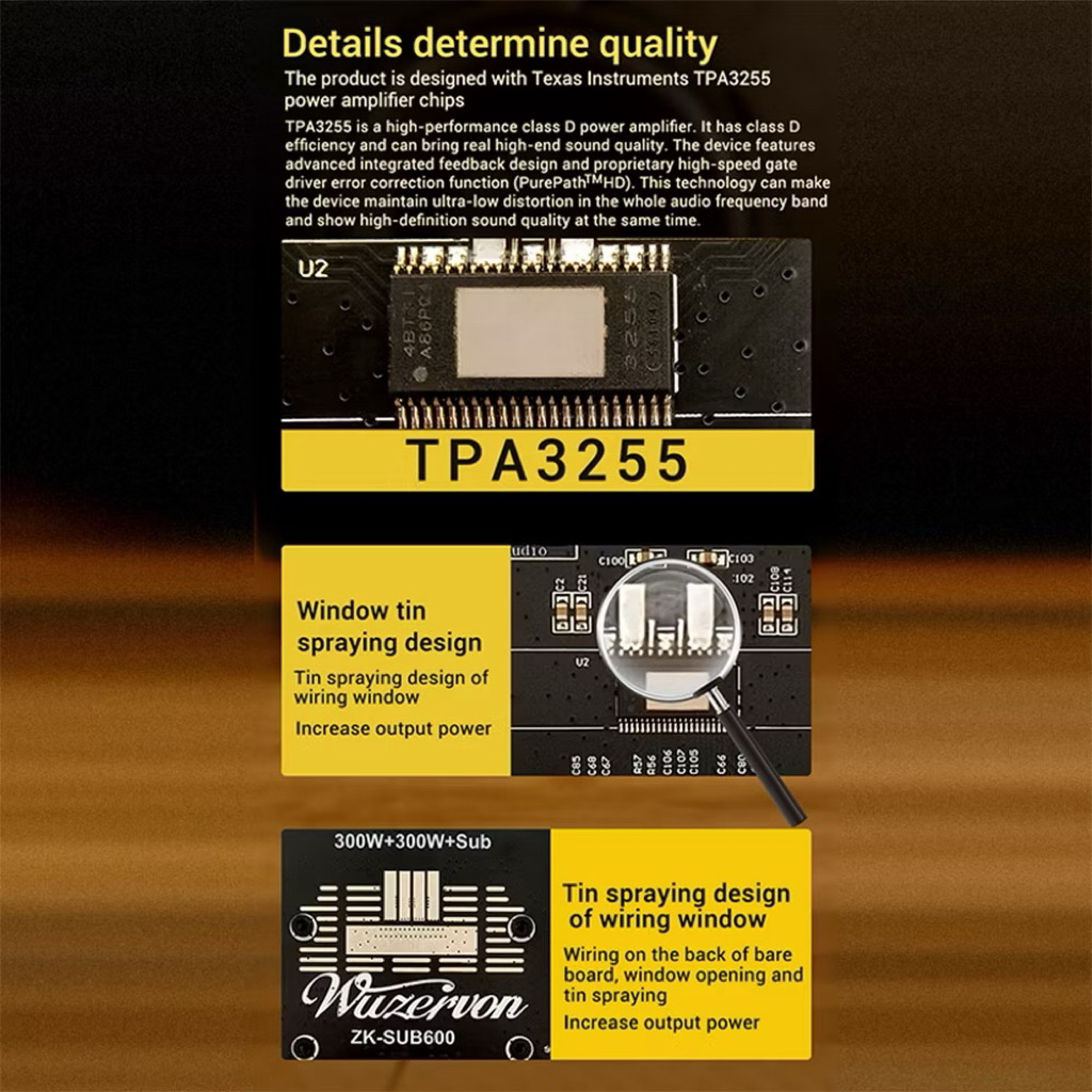 ZK-SUB600 DC 18-50V ซับวูฟเฟอร์ Bt เครื่องขยายเสียงชิป Tpa3255 2.0 + ช่อง 300W + 300W + 300W + Sub
