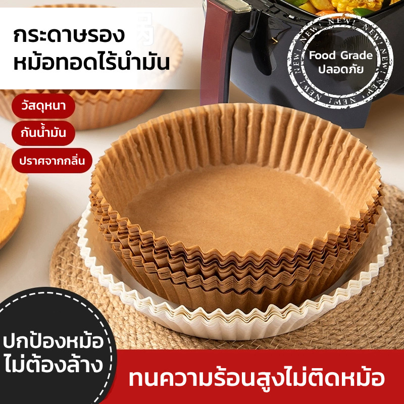 GRAREY กระดาษรองหม้อทอดไร้น้ำมันแบบหนา (100/200ชิ้น) เกรดอาหาร กระดาษเคลือบกันน้ำมันสองด้าน กันติด