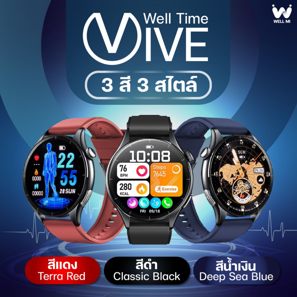 [ใหม่ล่าสุด] Well Time VIVE Smartwatch นาฬิกาสุขภาพ ติดตามความดัน ECG ออกกำลังกาย รับสายโทรออก
