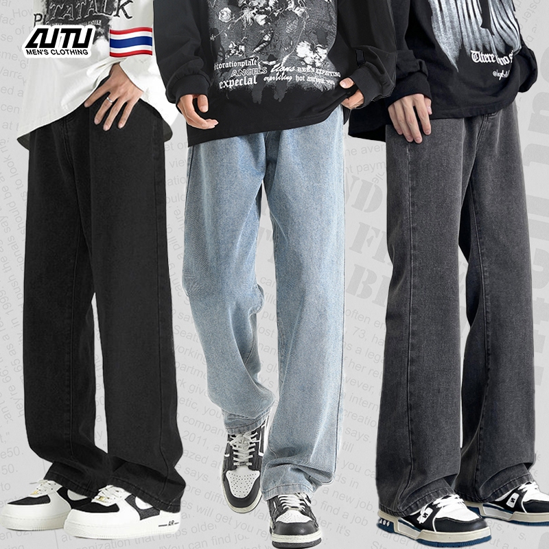 AUTU กางเกงยีนส์ สไตล์เกาหลี กางเกง baggy jeans กางเกงยีนส์ผู้ชาย ทรงตรง ทรงหลวม สไตล์อเมริกันวินเทจ มี 3 สีให้เลือกค่ะ เหมาะกับทุกรูปขา
