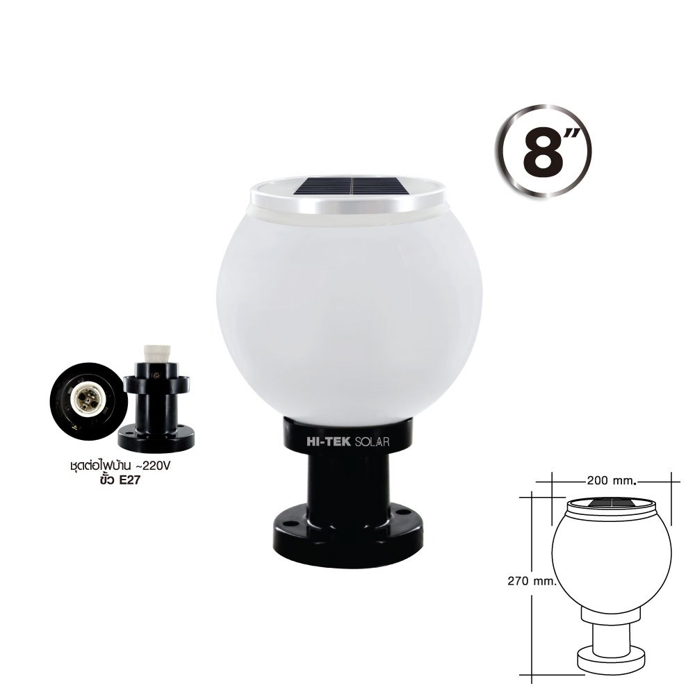 HI-TEK โคมไฟหัวเสาโซล่าเซล LED ฝ้า เปลี่ยนได้ 2 แสง