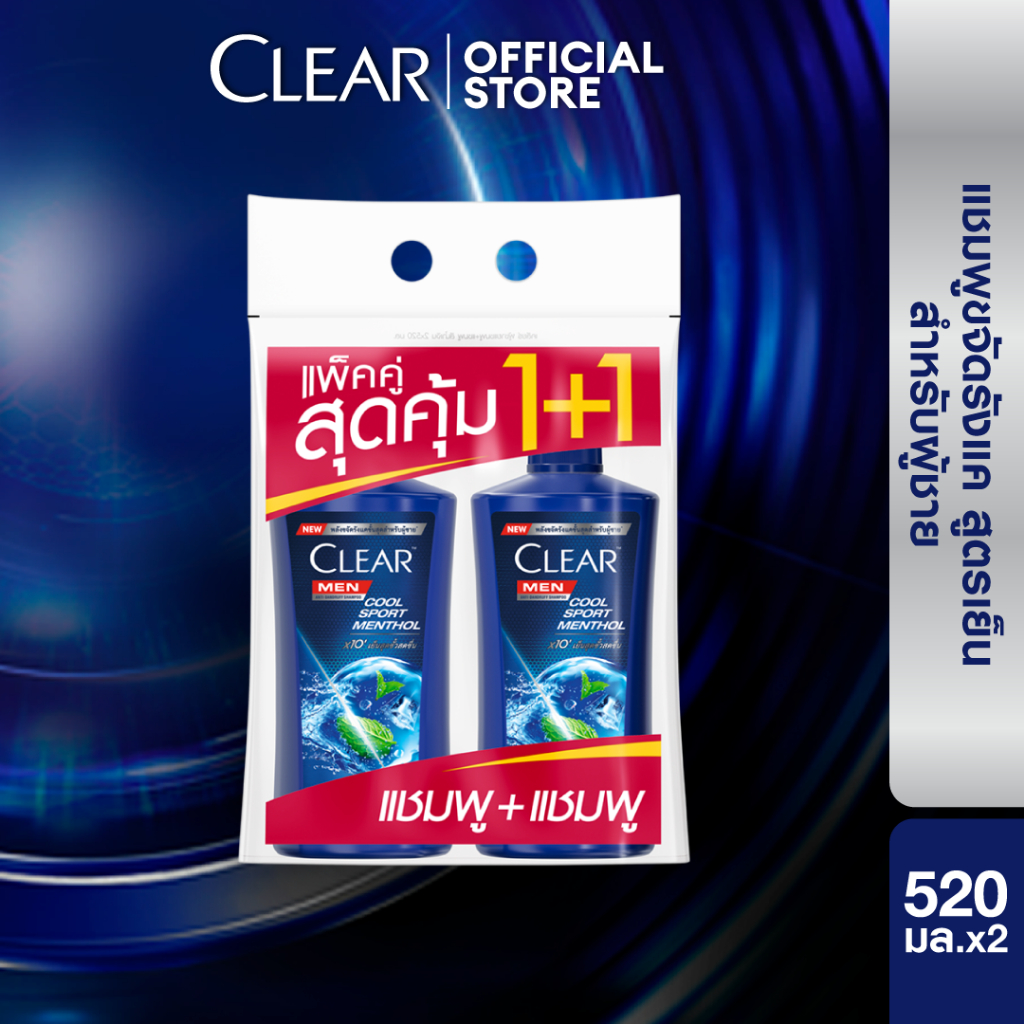 เคลียร์ เมน แชมพู คูลสปอร์ตเมนทอล แชมพูขจัดรังแค สูตรเย็น 520 มล. CLEAR Men Cool Sport Menthol Shampoo 520 ml.