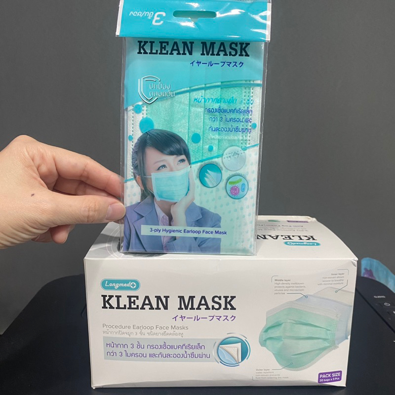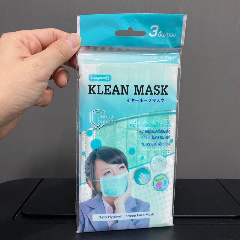 Longmed Klean Mask หน้ากากอนามัย ทางกสรแพทย์ แบบซอง 3 ชิ้น สำหรับพกพา