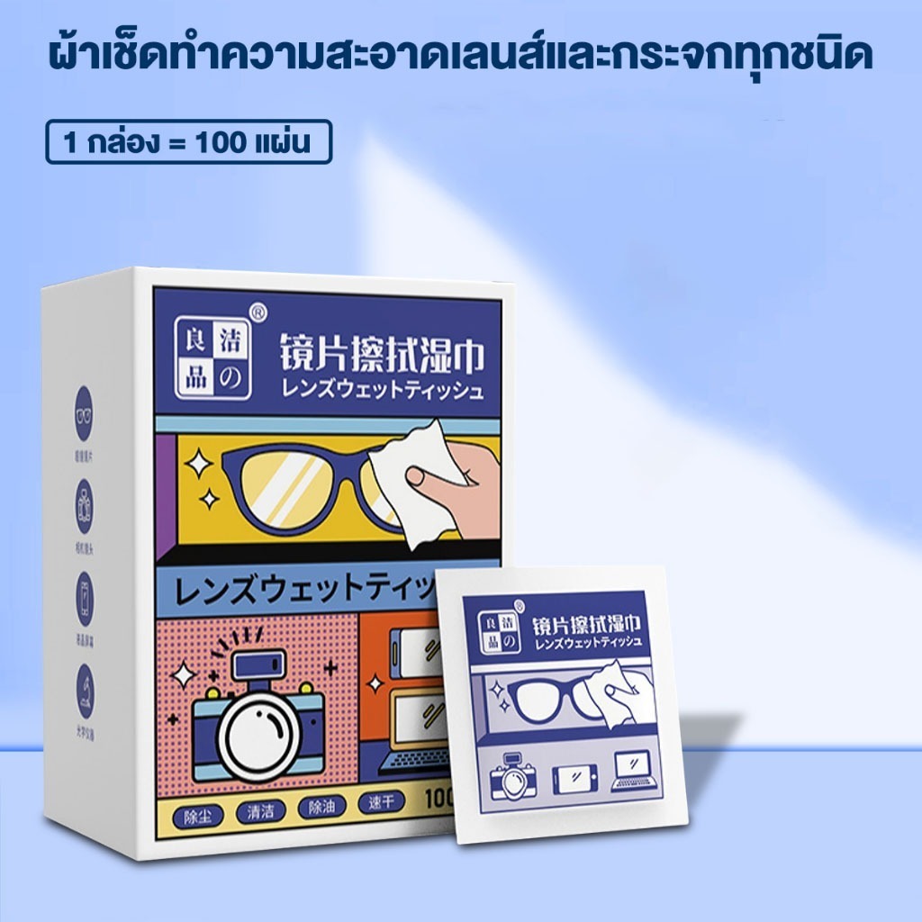 แผ่นเช็ดทำความสะอาด ผ้าเช็ดทำความสะอาดหน้าจอโทรศัพท์ ผ้าเช็ดแว่นตา ผ้าเช็ดเลนส์กล้อง 100 ชิ้นต่อกล่อง พร้อมจัดส่ง