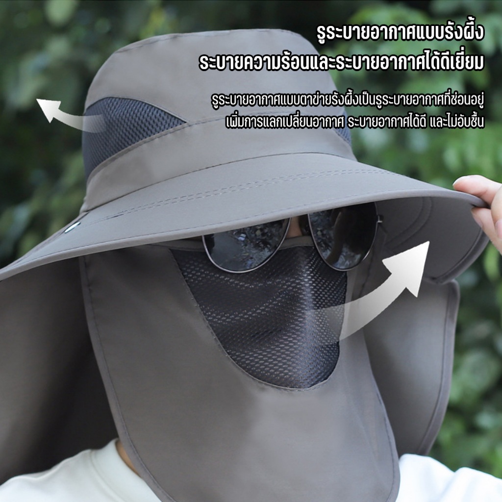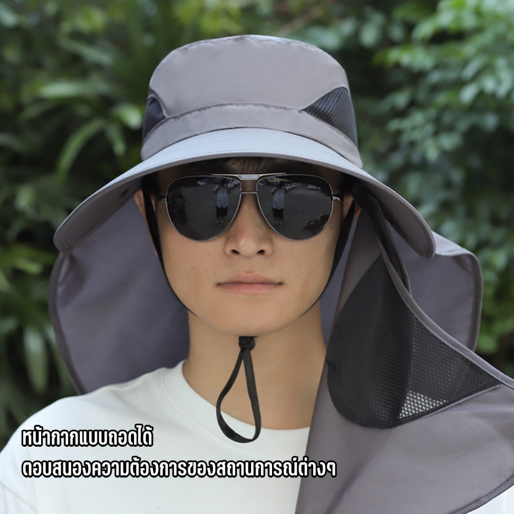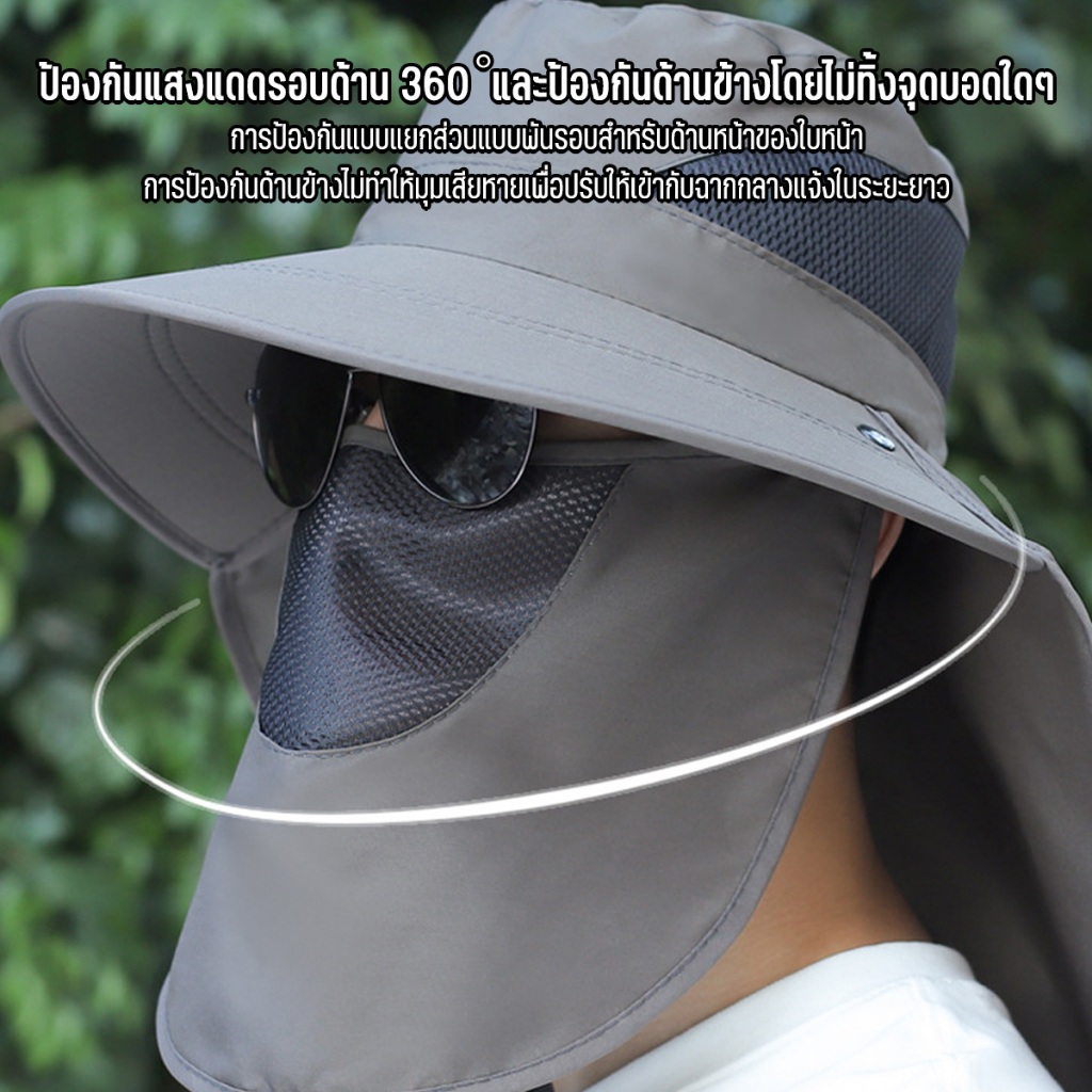 หมวกกันแดดชาย กันร้อน ถอดออกได้ หมวกกันแดด 360 UV ไม่กลัวแดด