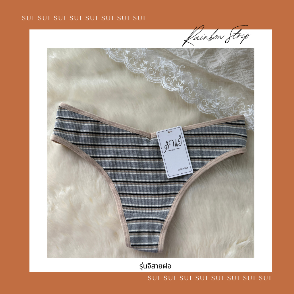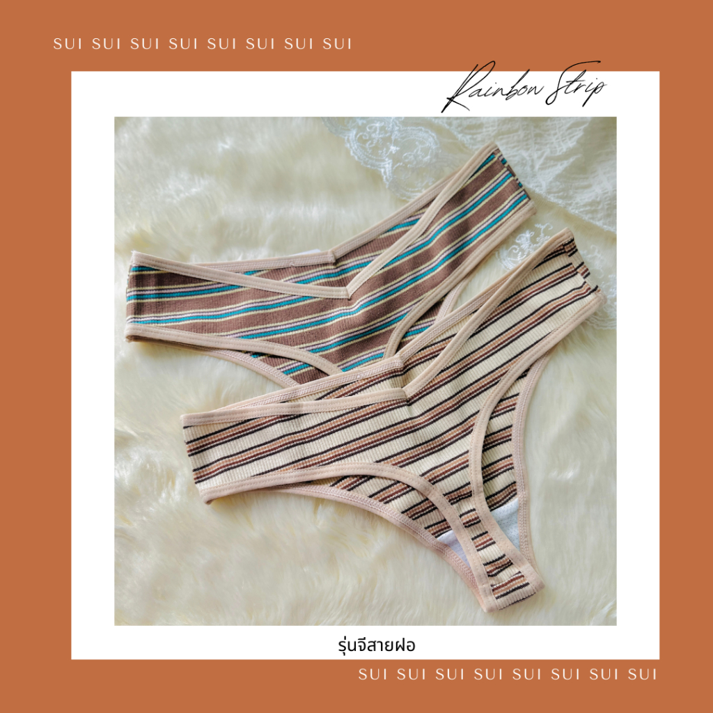กางเกงใน (Rainbow) SUI สำหรับผู้หญิง ผ้าฝ้าย ลายทาง เซ็กซี่เอวต่ำ ทรงบิกินี่ ผ้านิ่ม สายฝอใส่สบาย สีสายรุ้ง ส่งไวจากไทย