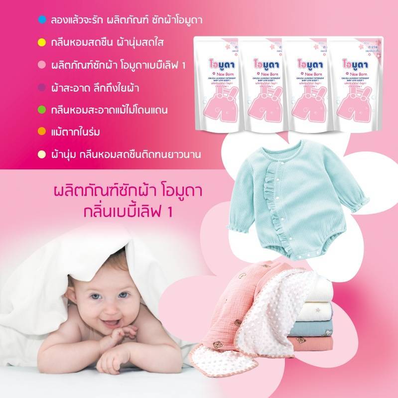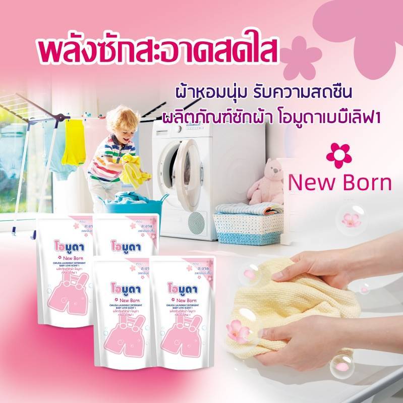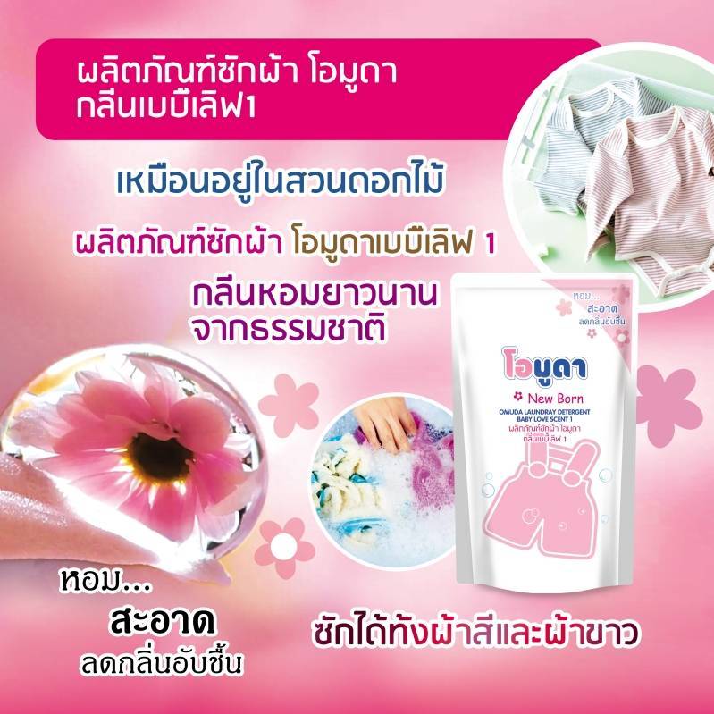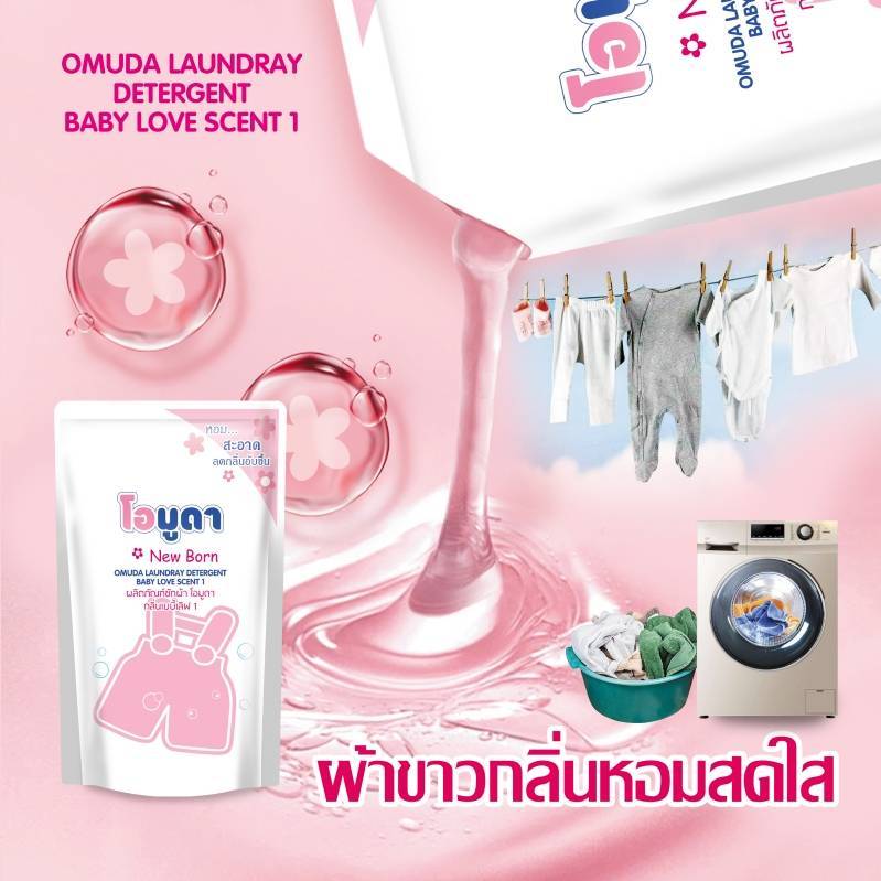 -1ถุง/550ML. ผลิตภัณฑ์น้ำยาซักผ้าOmuda Newborn(เบบี้เลิฟ1) หอมสะอาดลดกลิ่นอับชื้น ขนาด550ML.ต่อถุง ไม่ระคายเคือง ทำความส