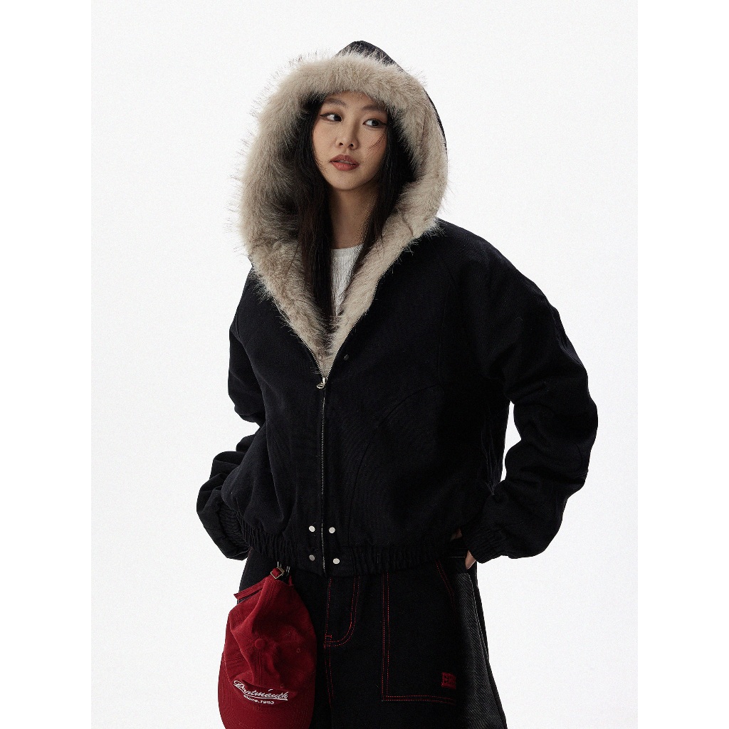 SUIKONE ซุยโคเนะ อเมริกันย้อนยุคคลีนฟิตขนปกหนาแจ็คเก็ตฤดูหนาวผู้ชายและผู้หญิงแจ็คเก็ตผ้าฝ้ายอบอุ่น