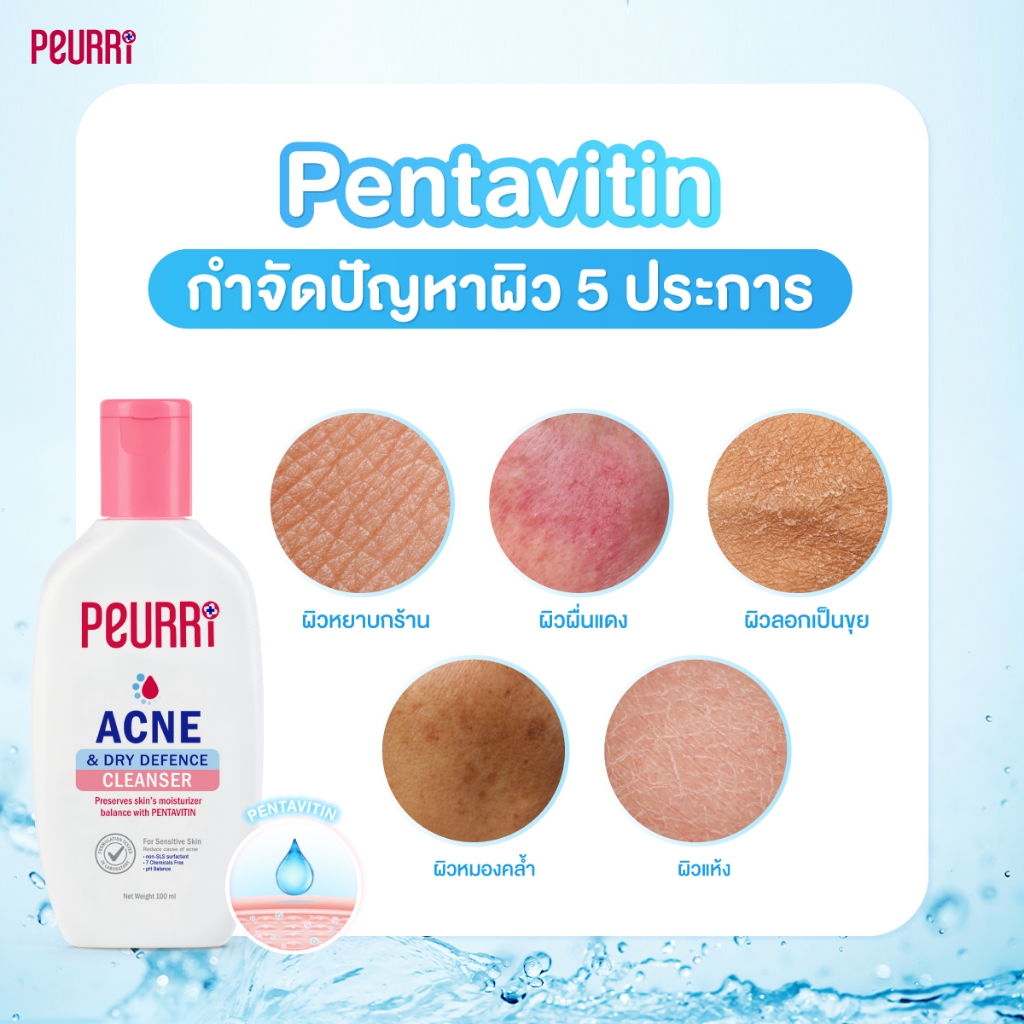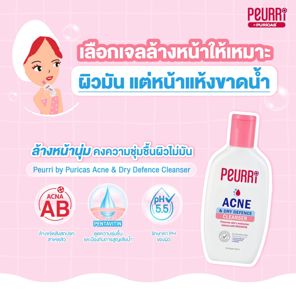 [1 แถม1 ] PEURRi Acne & Dry Defence Cleanser 100ml. หมดอายุ 20/05/26 ทั้งสินค้าหลักและสินค้าแถม