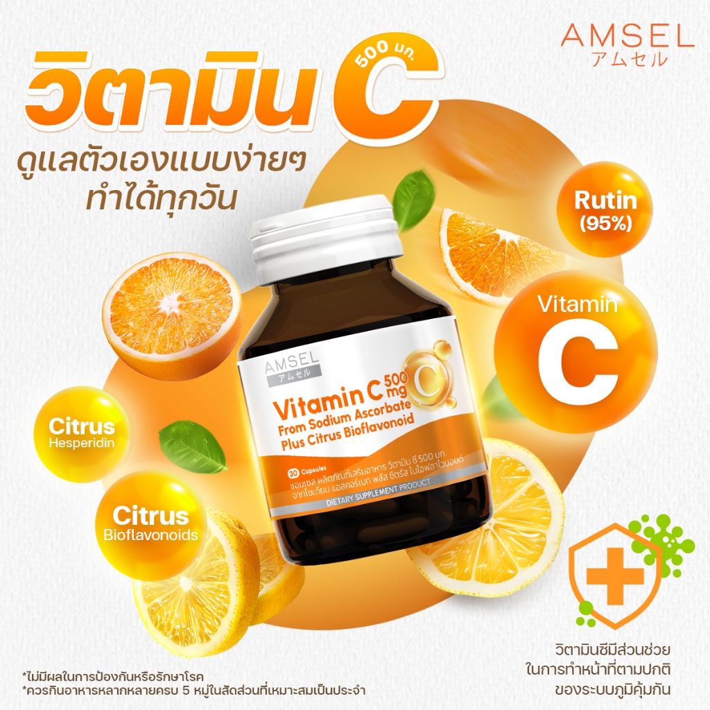 Amsel Vitamin C 500 mg. แอมเซล วิตามินซี 500 มก. (30 แคปซูลx2ขวด)