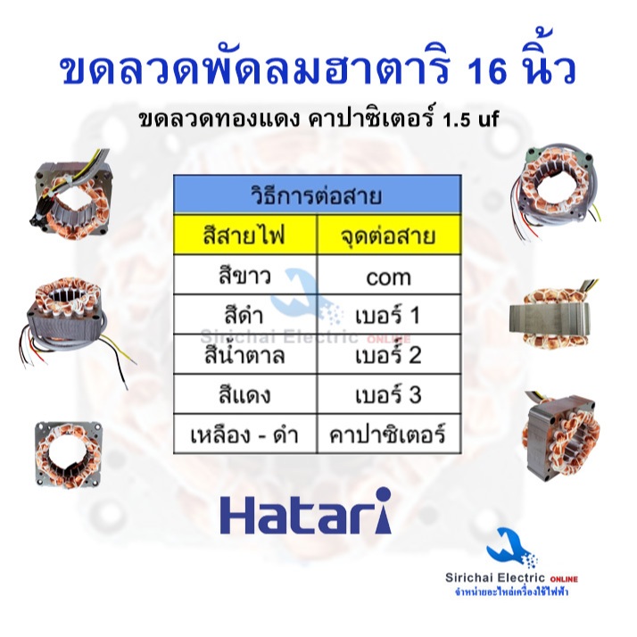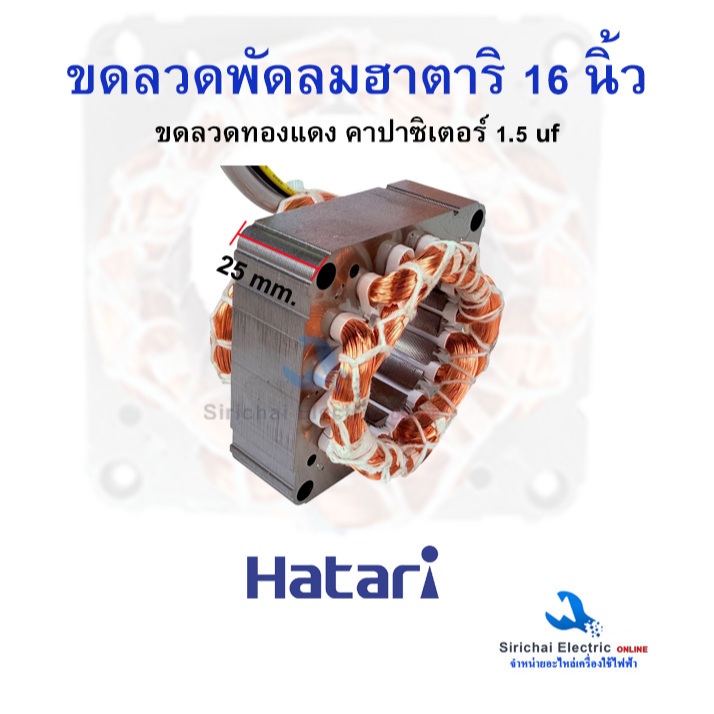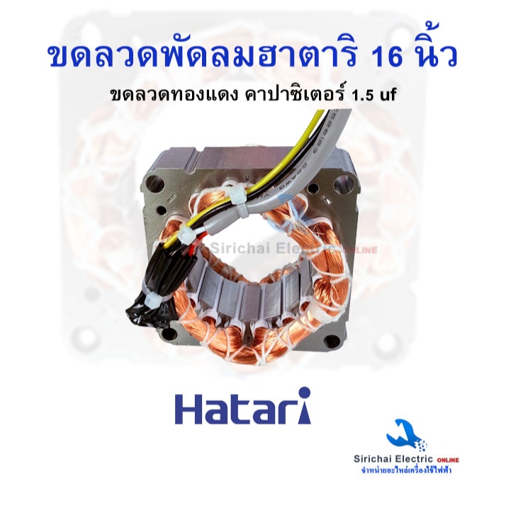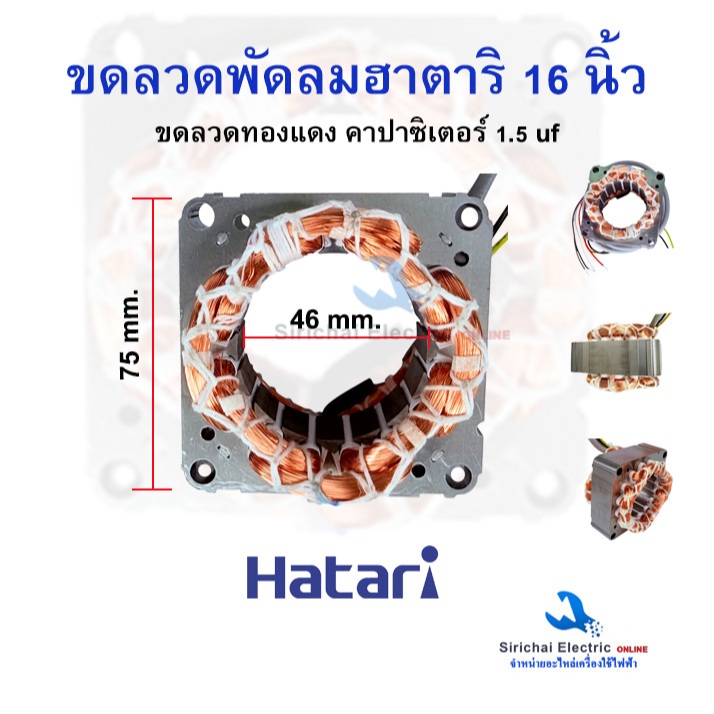 ขอลวดพัดลมฮาตาริ 16 นิ้ว ทองแดงแท้ (สายไฟออกหน้า) พัดลม Hatari ขนาด75x25x46mm.คาปาซิเตอร์ 1.5 uf **H16