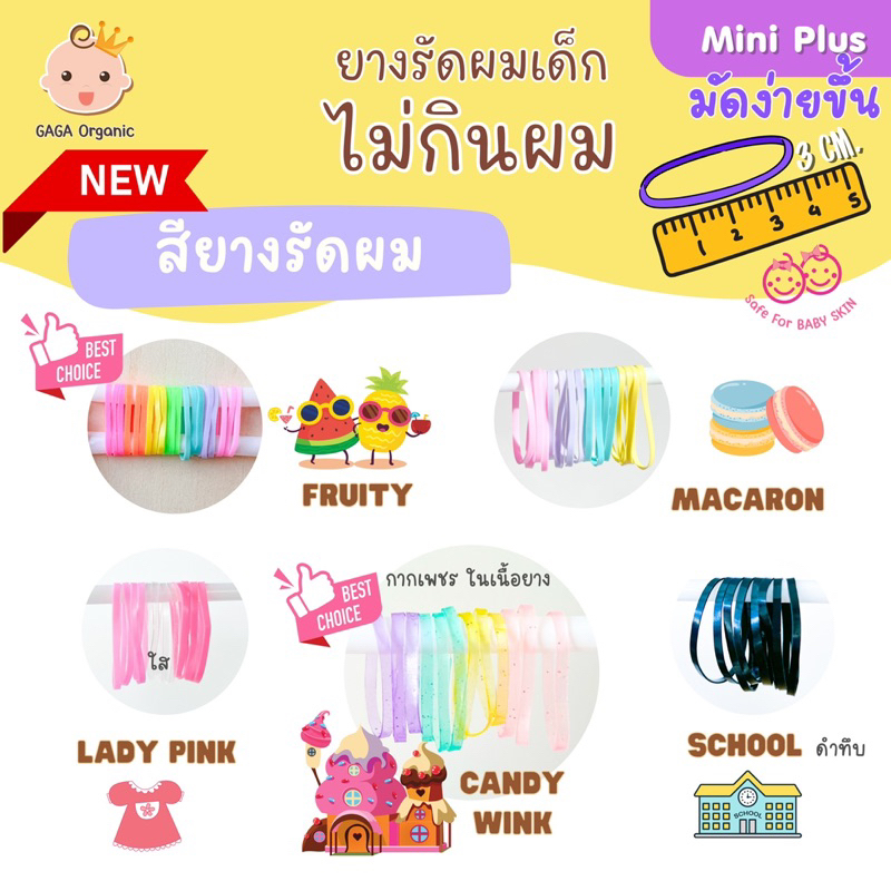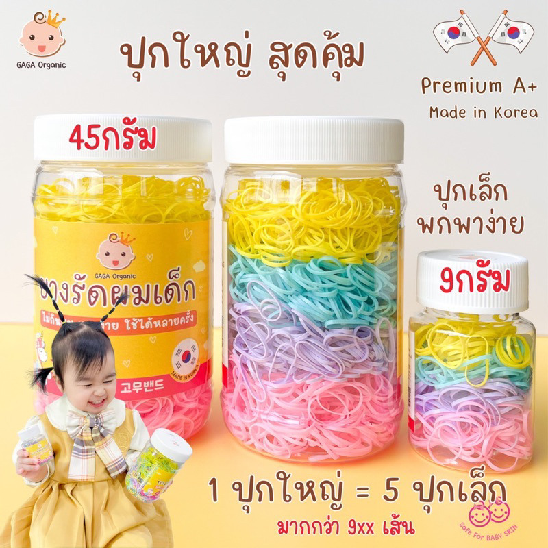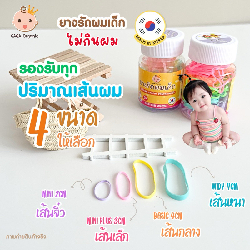 (เส้นเล็ก24mm) GAGA ยางรัดผมเด็ก “ไม่กินผม” แกะง่าย ไม่เจ็บหัว✅ มัดง่ายขึ้น (mini plus 24mm) / ปุก 9 กรัม 180-200เส้น