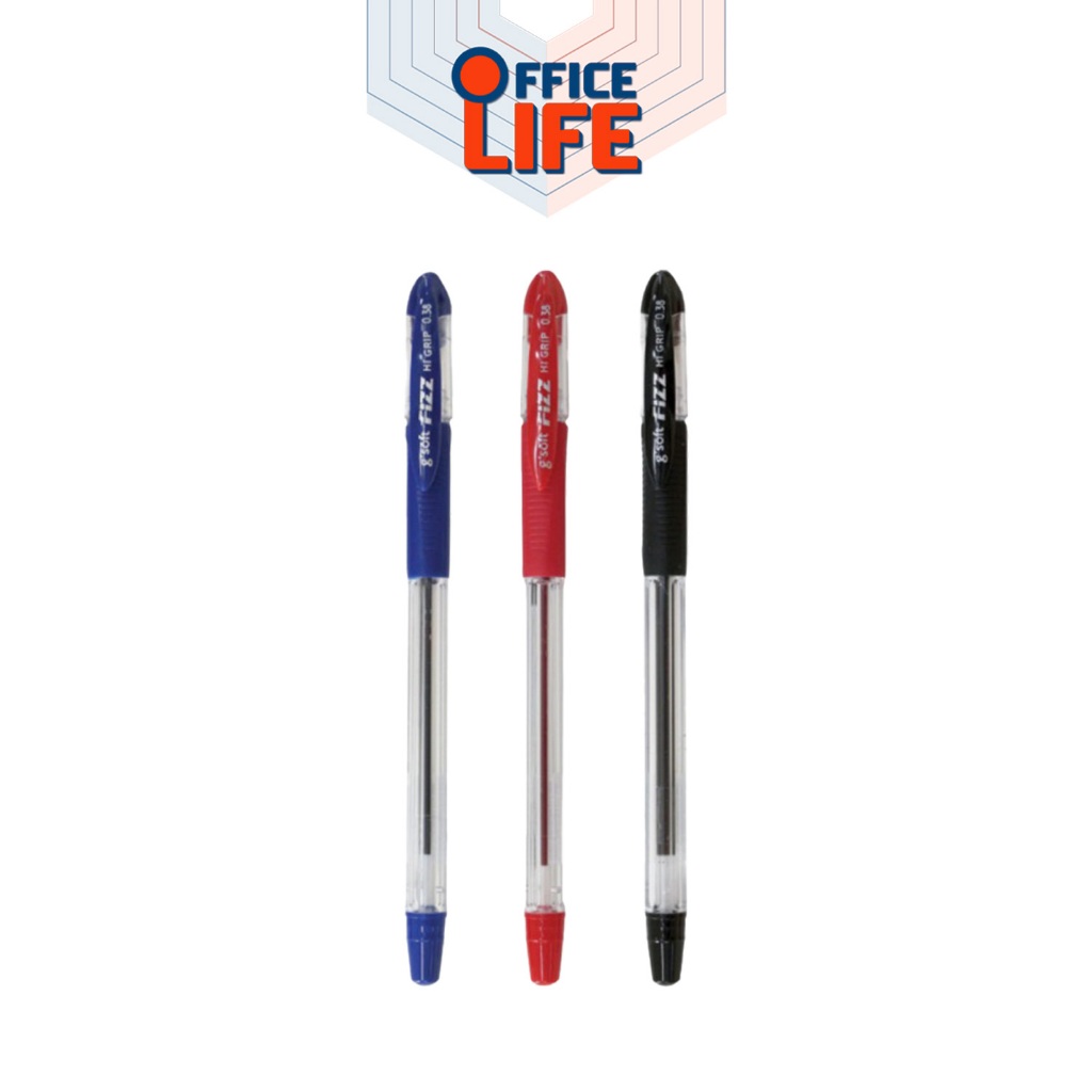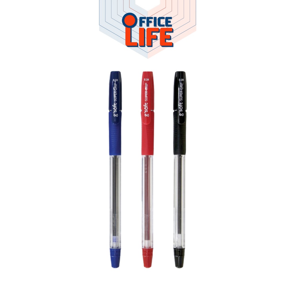 G’Soft (จีซอฟท์) ปากกาลูกลื่น ปากกา รุ่น Fizz Hi-Grip / Super-Grip ขนาดหัว 0.28-0.38 มม. หมึกน้ำเงิน / ดำ / แดง (1 ด้าม)