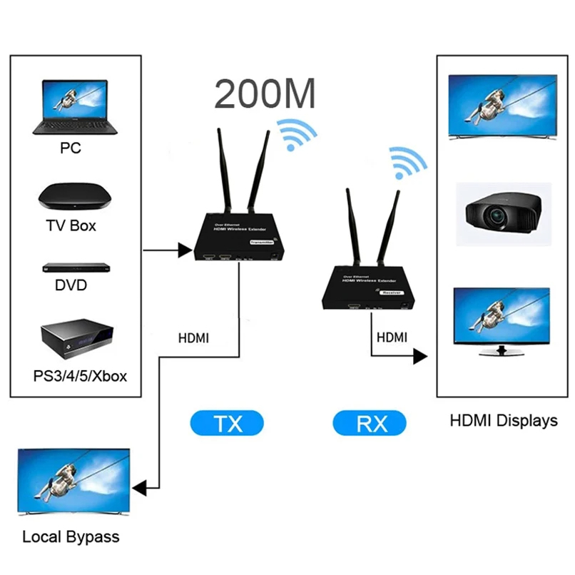 Wireless HDMI Extender 200M 2.4G/5Ghz 1080P Video Transmitter Receiver