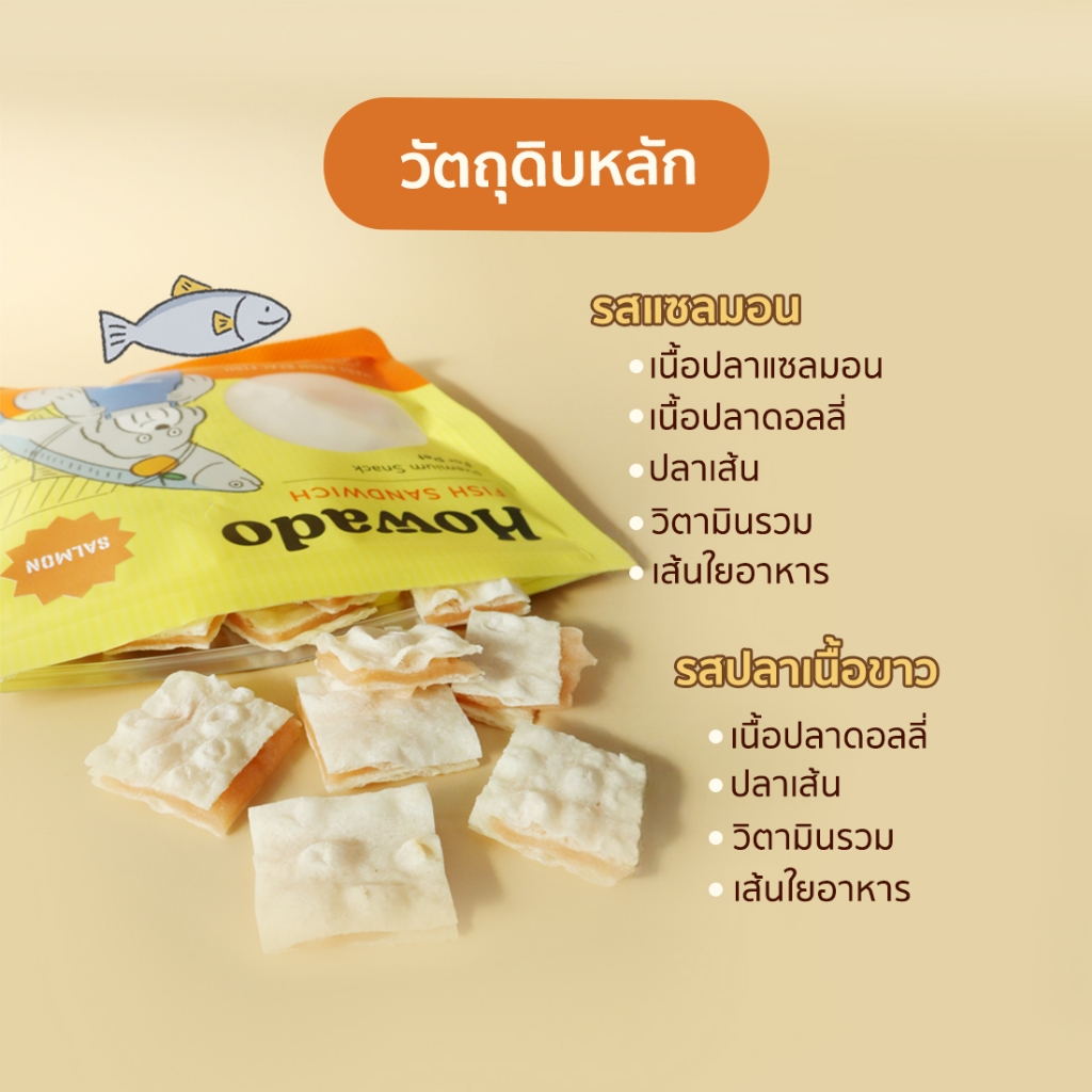 ขนมสุนัขเพื่อสุขภาพ มีวิตามินรวม ขนมฝึกหมา แซนวิสปลาเนื้อขาว อร่อย ทานได้ทั้งพันธุ์ใหญ่และพันธุ์เล็ก โฮวาโดะ Howado