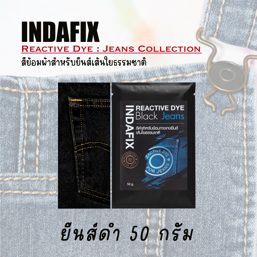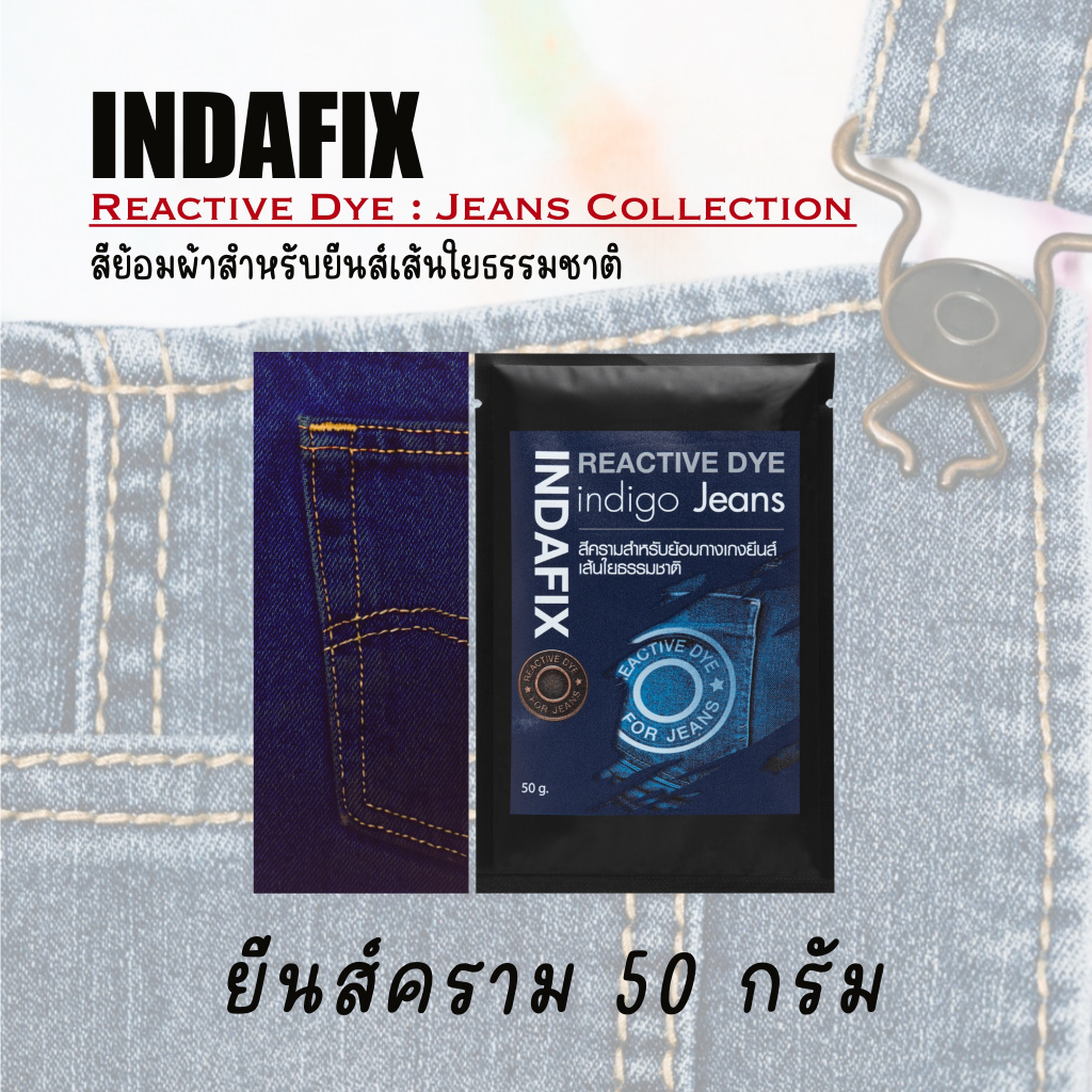 สีย้อมผ้าเส้นใยธรรมชาติ สูตรย้อมอุ่น สำหรับย้อมกางเกงยีนส์ยี่ห้อINDAFIX ขนาด50กรัม(Jeans Collection)