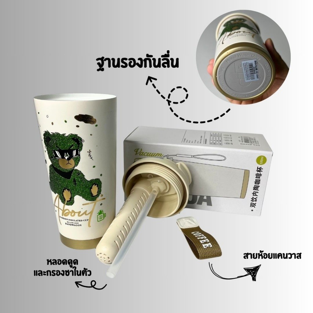 XIAOJU แก้วเก็บอุณหภูมิร้อน & เย็น แก้วกาแฟ เคลือบเซรามิก ขนาด 520ml กรองชาได้ สแตนเลส316