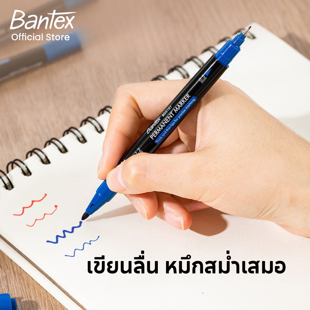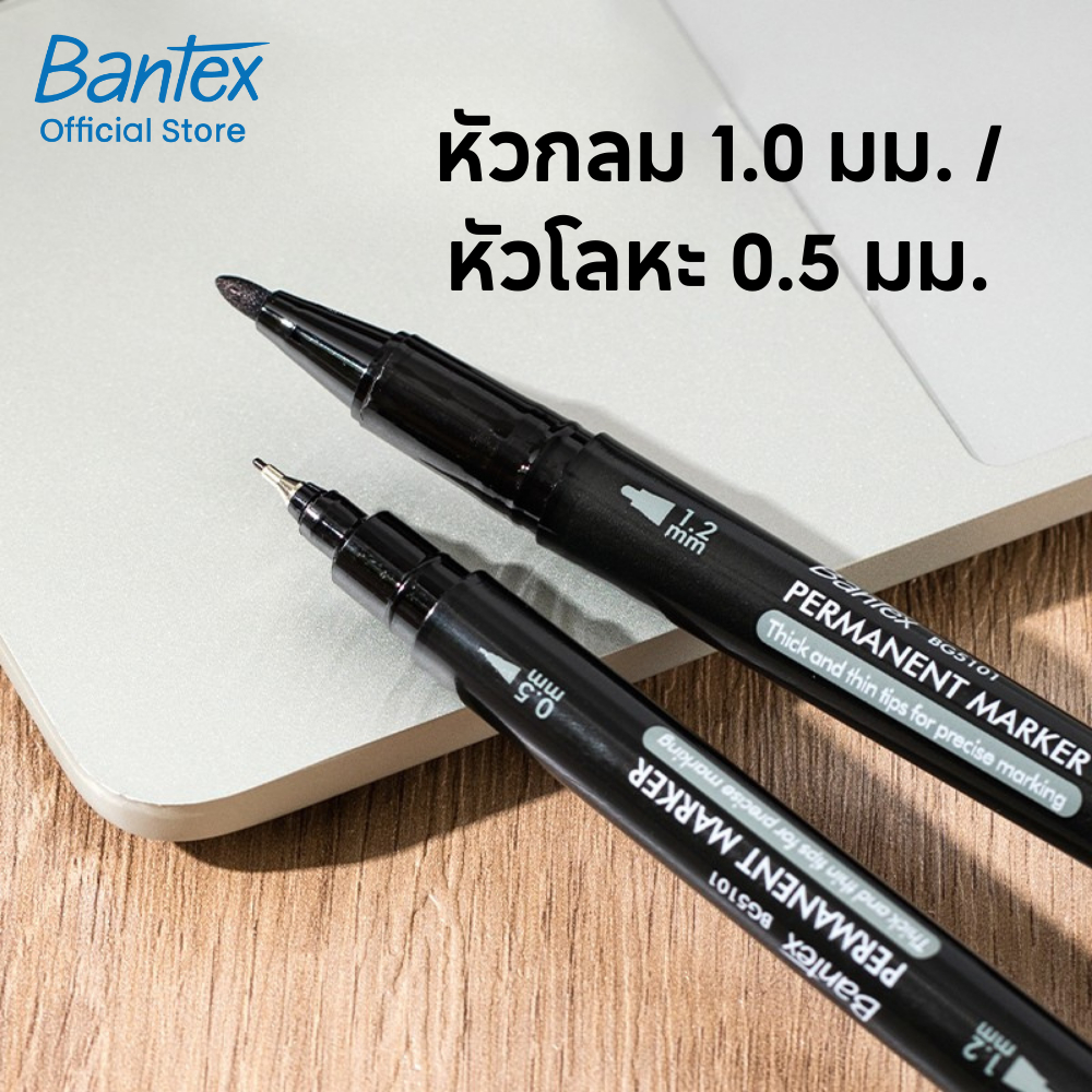 Bantex ปากกาเคมี ปากกามาร์กเกอร์ กันน้ำ ใช้ได้ทั้งกระดาษและพลาสติก หัว 0.5mm 1.2mm Permanent Marker