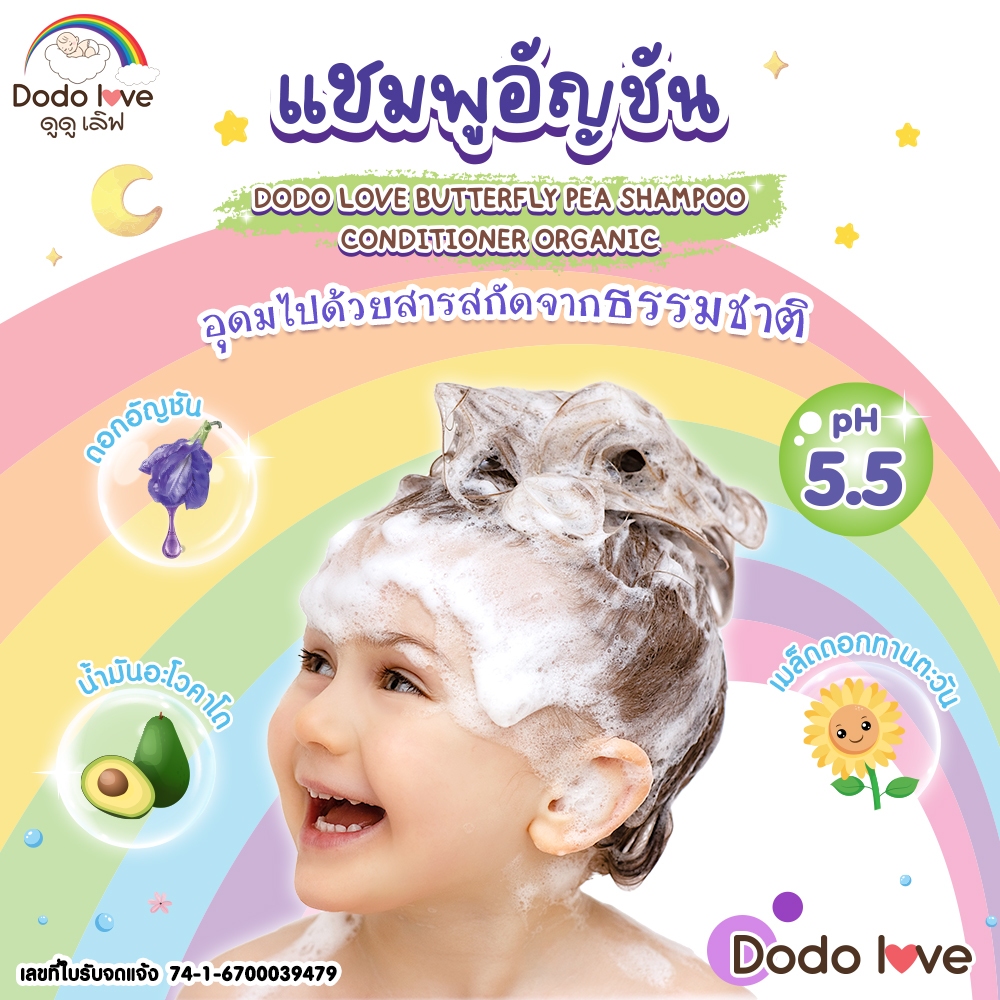 DODOLOVE Organic แชมพู แชมพูเด็กอัญชัน แชมพูเด็ก อ่อนโยน ใช้ได้ตั้งแต่เด็กแรกเกิด ขนาด 250ml