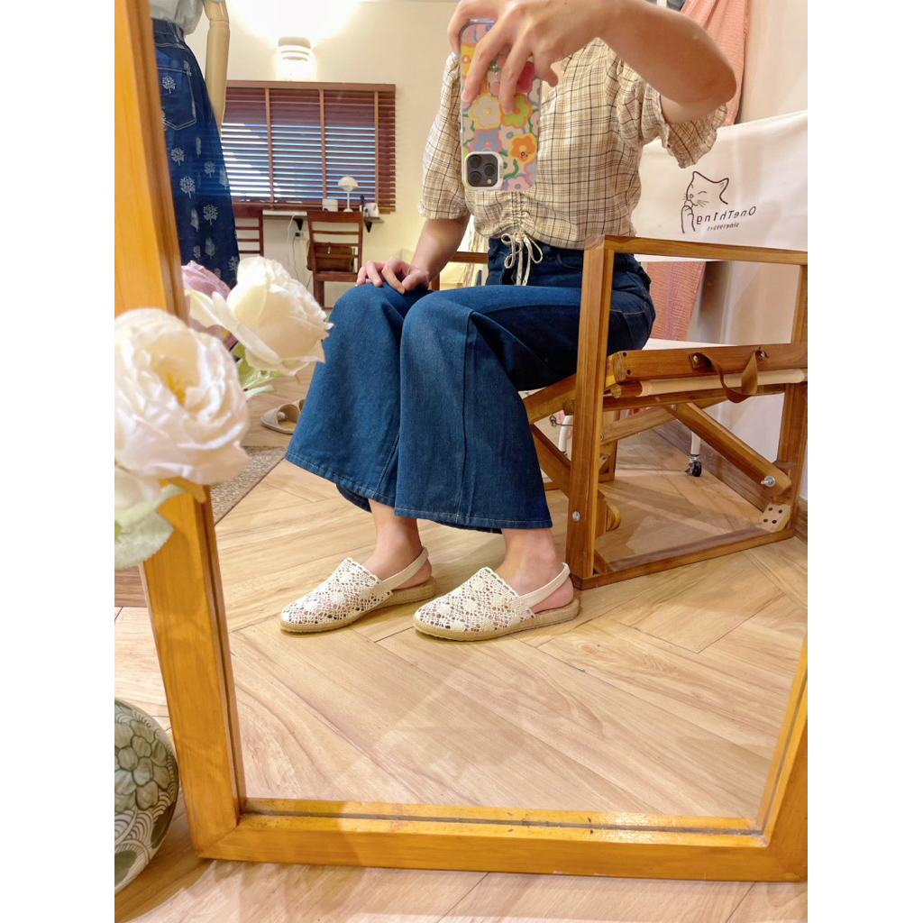 รองเท้ารัดส้น/ผ้าลูกไม้ฉลุ