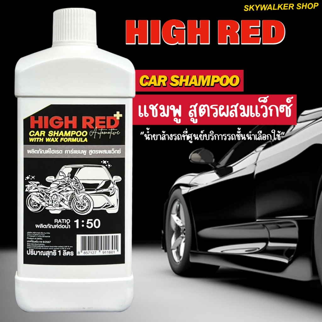 HIGH RED แชมพูล้างรถ ผสมแวกซ์ พร้อมเคลือบสี สูตรเข้มข้น อัตราส่วน1:50 ขนาด 1,000ml