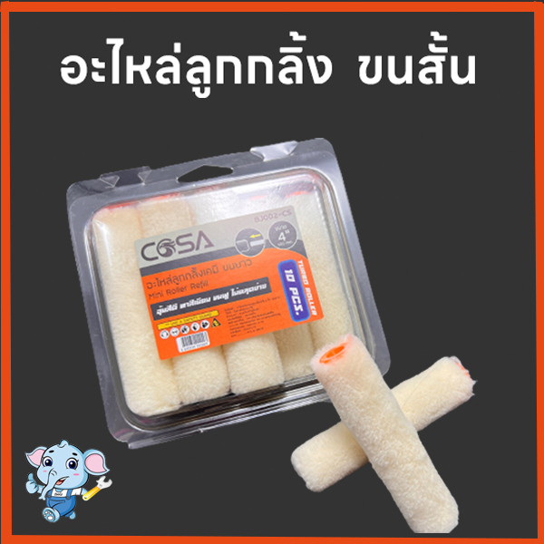 COSA อะไหล่ลูกกลิ้ง ทาสี ขนแกะแท้ ขนาด 4 นิ้ว (1 กล่อง 10 ลูก) ยี่ห้อ Muscle Cow ลูกกลิ้ง สีน้ำ อะคริลิค สีน้ำมัน ขนแกะ