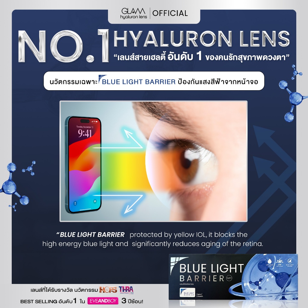 เลนส์ใสป้องกันแสงสีฟ้า GLAM HYA BLUE LIGHT BARRIER [Hyaluron Lens💧] เลนส์สำหรับคนตาแห้ง ตอบโจทย์คนรักสุขภาพดวงตา