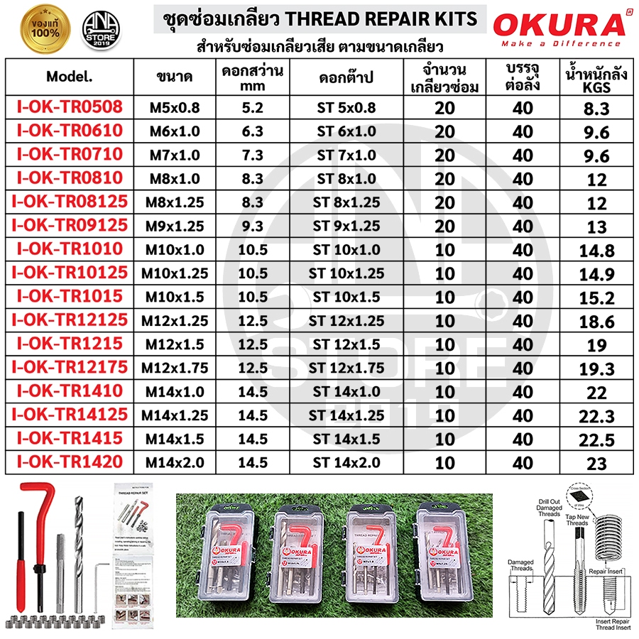 ชุดซ่อมเกลียวสปริง OKURA เกรด HSS 5-14mm ของแท้