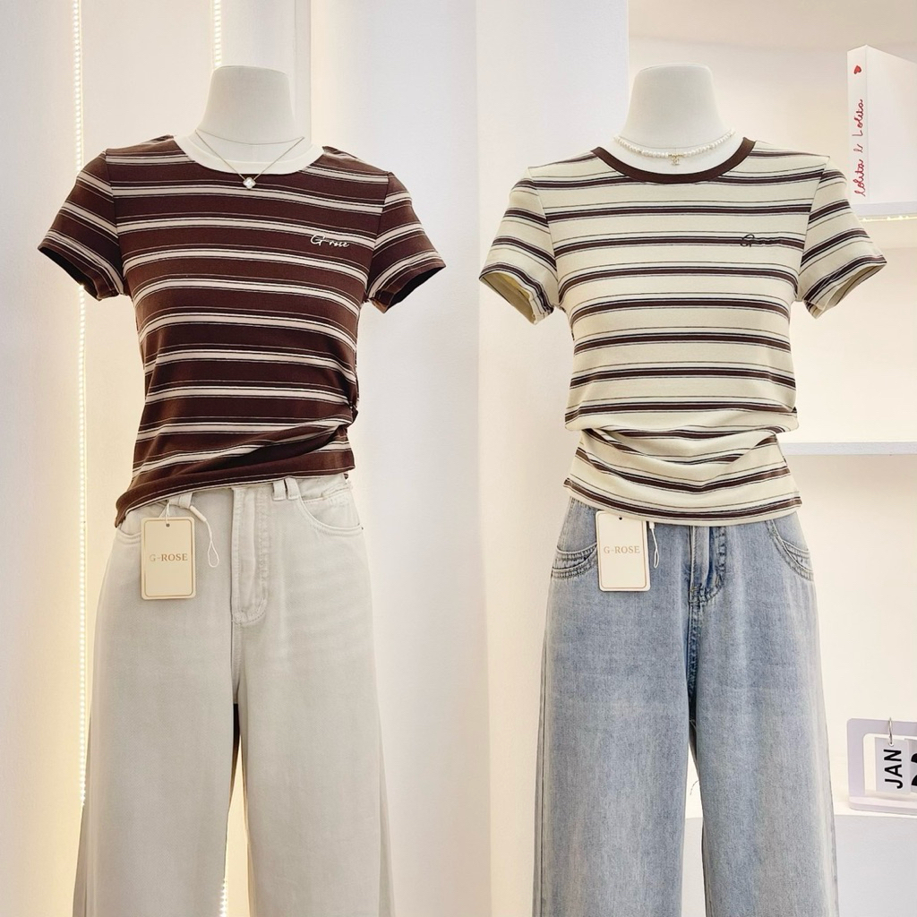 G-rose เสื้อยืดลายริ้ว แต่งอะไหล่เงิน