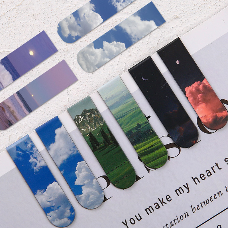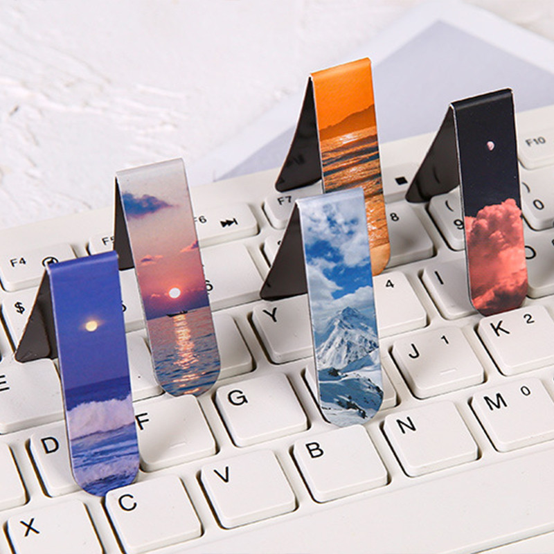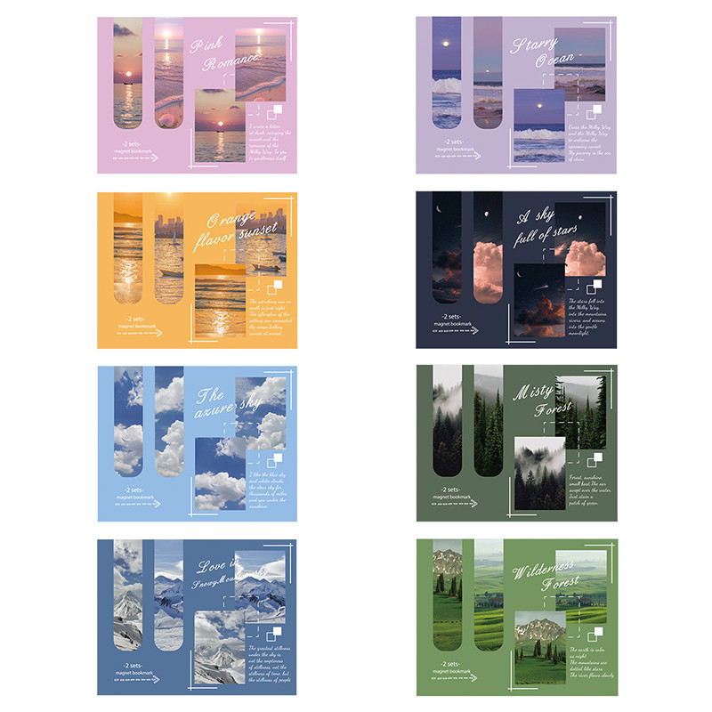 2 ชิ้นหรูหราบรรจุภัณฑ์ภูมิทัศน์ชุดรูปแบบบุ๊คมาร์คแม่เหล็กนักเรียนมินิแม่เหล็กหน้าหนังสือโฟลเดอร์วรรณกรรมที่คั่น