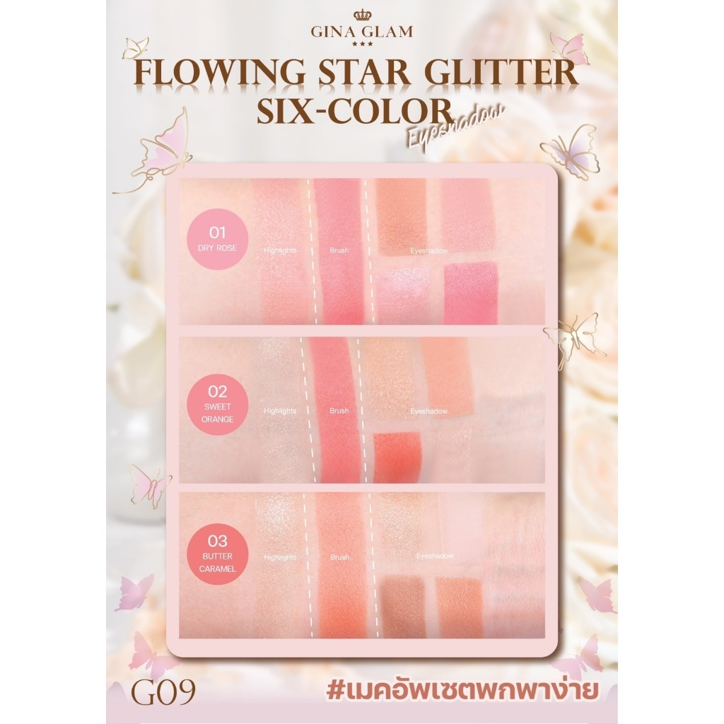 G09 GINA flowing star glitter six color จีน่าแกลม โฟลว์วิง สตาร์ อายแชโดว์ 11.9 กรัม