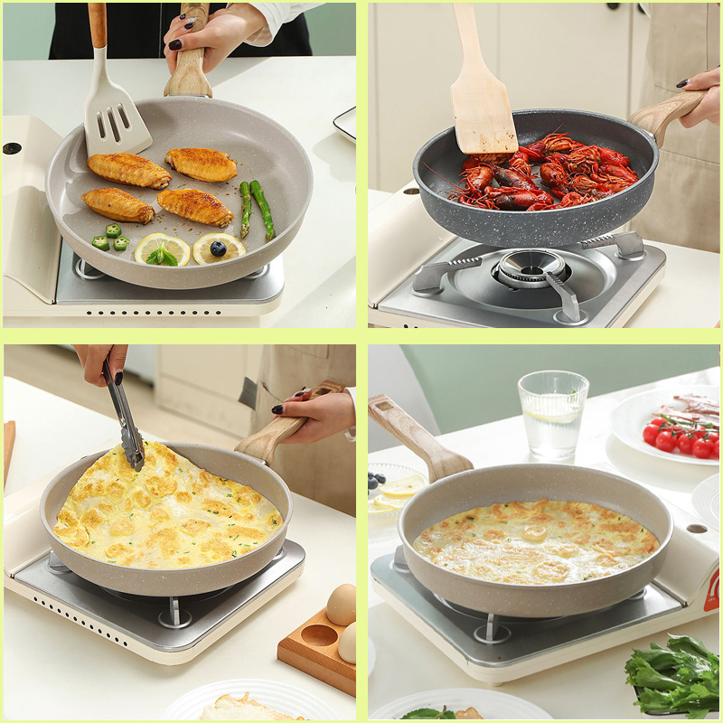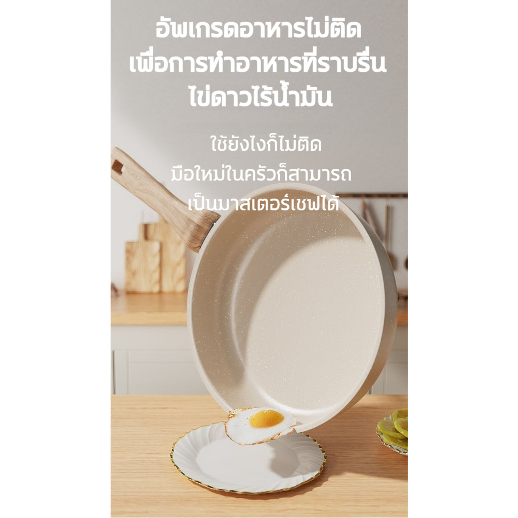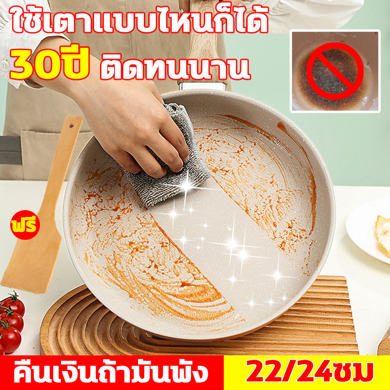 กระทะเคลือบหินอ่อน ฟรีตะหลิวไม้ ขนาด22-24cm ก้นหม้อจะไม่ดำ กระทะมินิมอล ก้นลึก ก้นแบน ไม่ติดกระทะ ใช้กับเตาได้ทุกประเภท