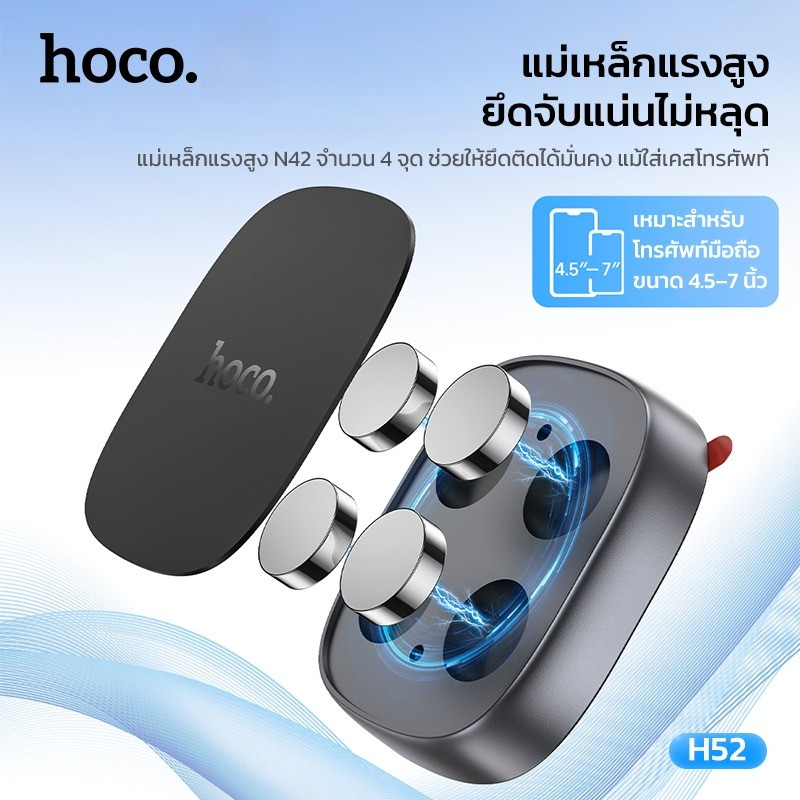 HOCO H52 ที่ยึดโทรศัพท์ในรถ ชนิดแม่เหล็ก N42 ติดคอนโซล/แดชบอร์ด รองรับมือถือ 4.5 – 7 นิ้ว น้ำหนัก 400g ที่ยึดมือถือ hc4