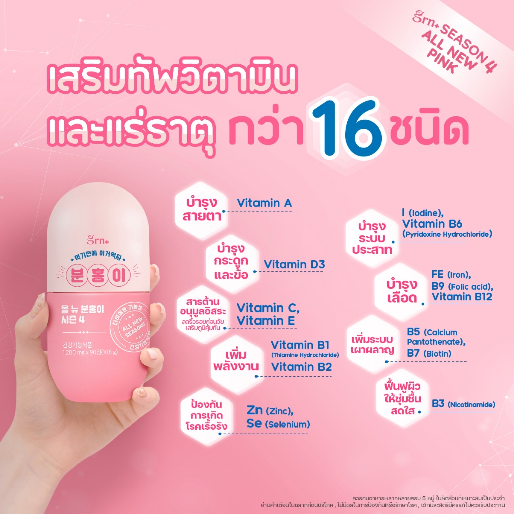 ( Exp.26/08/2026 ) GRN+ [ 1 กระปุก ] Season4 All New Pink อาหารเสริมเกาหลี วิตามิน ลด น้ำหนัก คุมหิว