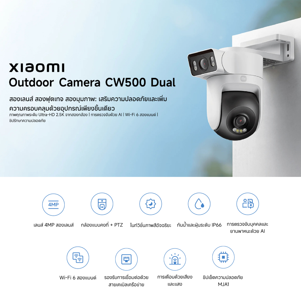 Xiaomi Outdoor Camera CW500 Dual กล้องวงจรปิด | การตรวจจับด้วย AI สองกล้อง I ความละเอียดภาพ 2.5K | Wi-Fi 6 แบบดูอัลแบนด์