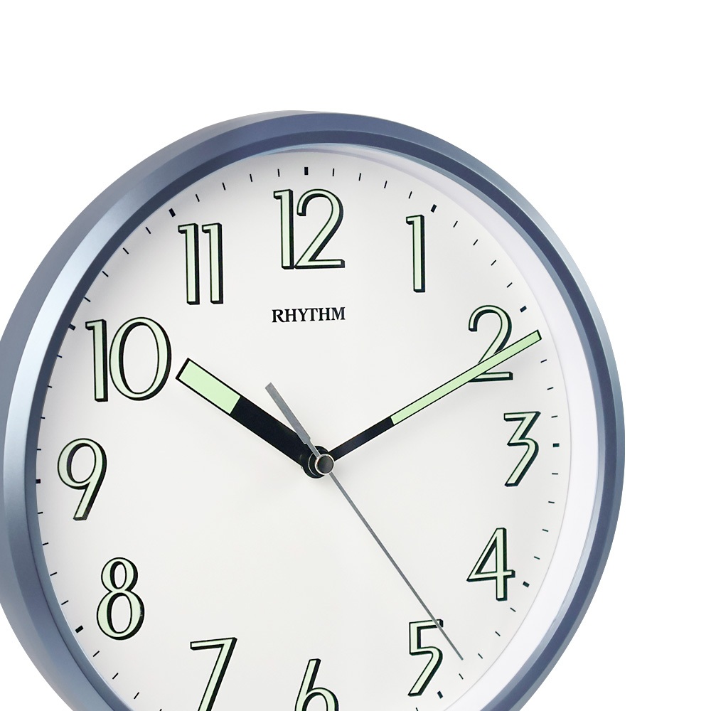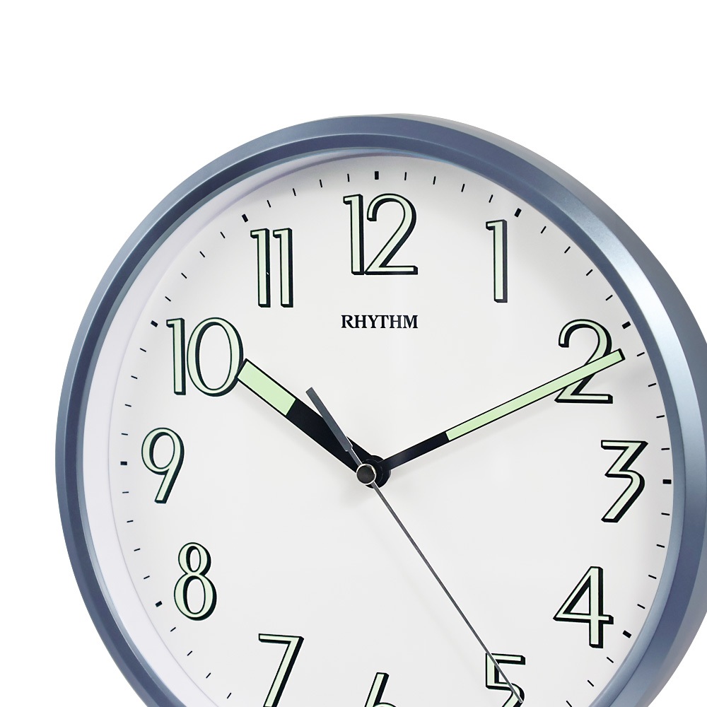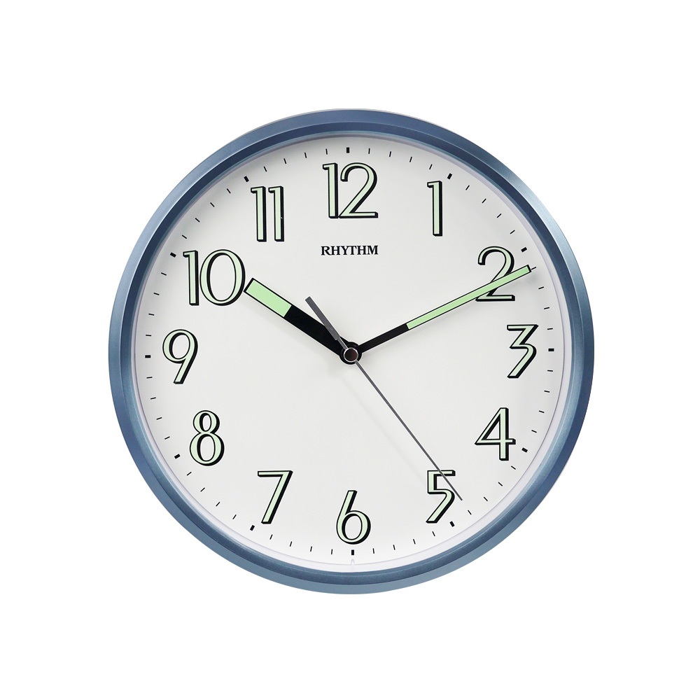 RHYTHM นาฬิกาแขวน เข็มและตัวเลขสะท้อนแสง ขอบสีฟ้า 24 ซม. CMG727NR04