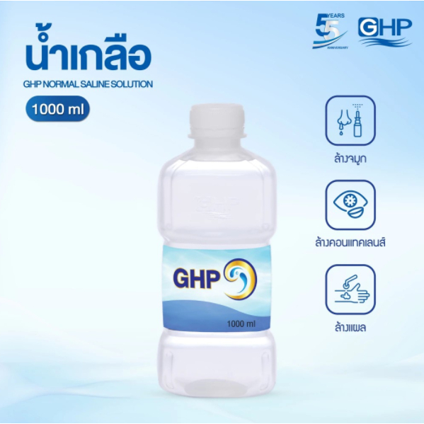 น้ำเกลือล้างจมูก GHP NORMAL SALINE ขวดดัมเบล ขนาด 1000ML. จำนวน 1 ขวด