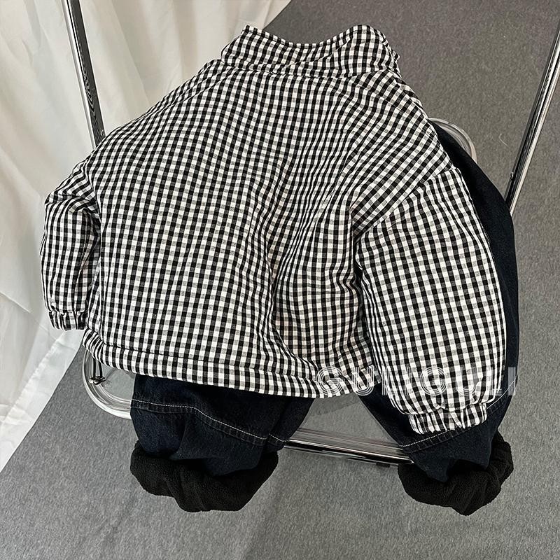 แจ็คเก็ตเด็กชายฤดูหนาวเสื้อผ้าเด็กหนาอบอุ่นลายสก๊อตเด็กถนนสวมผ้านวมด้านบน