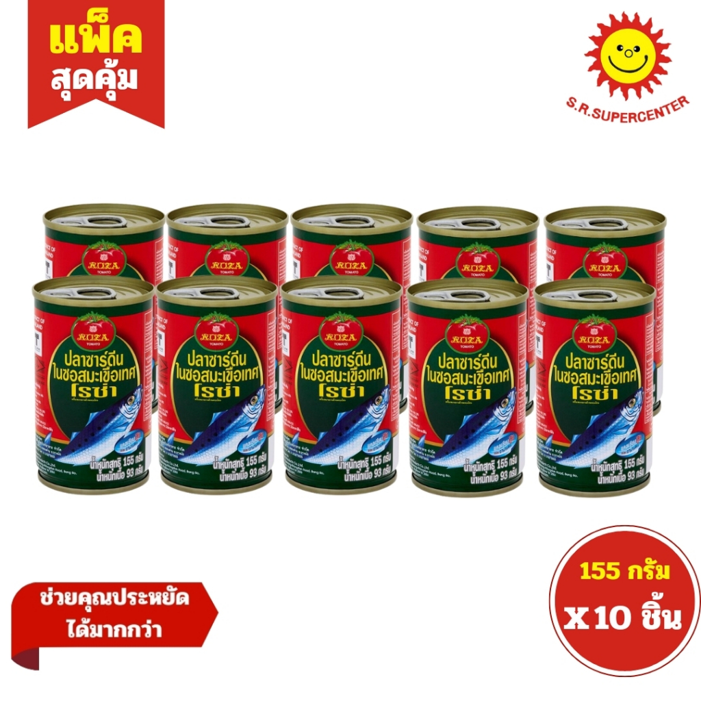 Roza โรซ่า ปลาซาร์ดีน ปลาแมคเคอเรล ในซอสมะเขือเทศ ขนาด 155 กรัม (แพ็ค10กระป๋อง)