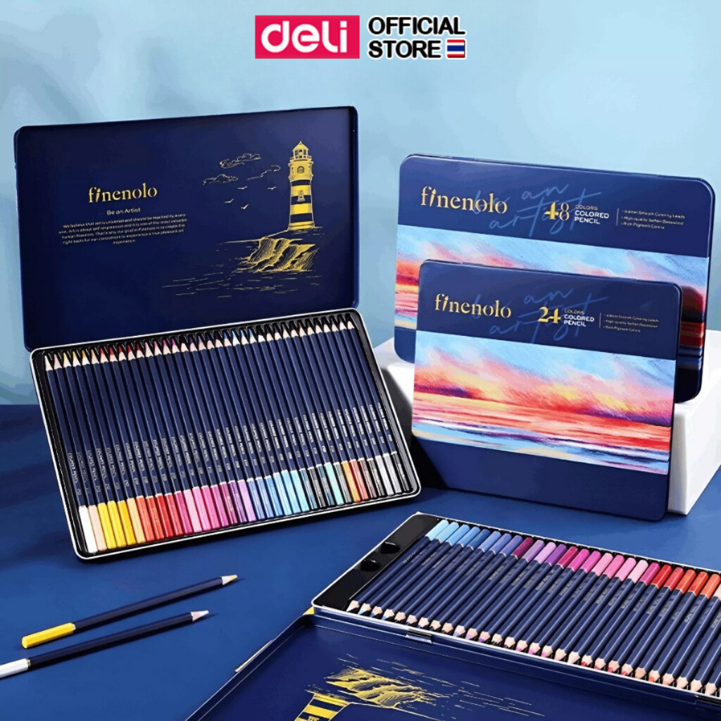 ดินสอสีไม้ Deli 24/36/48/72 สี กล่องเหล็ก สีเข้มสด เม็ดสีแน่น เหมาะวาดภาพและงานศิลปะ Colored Pencil