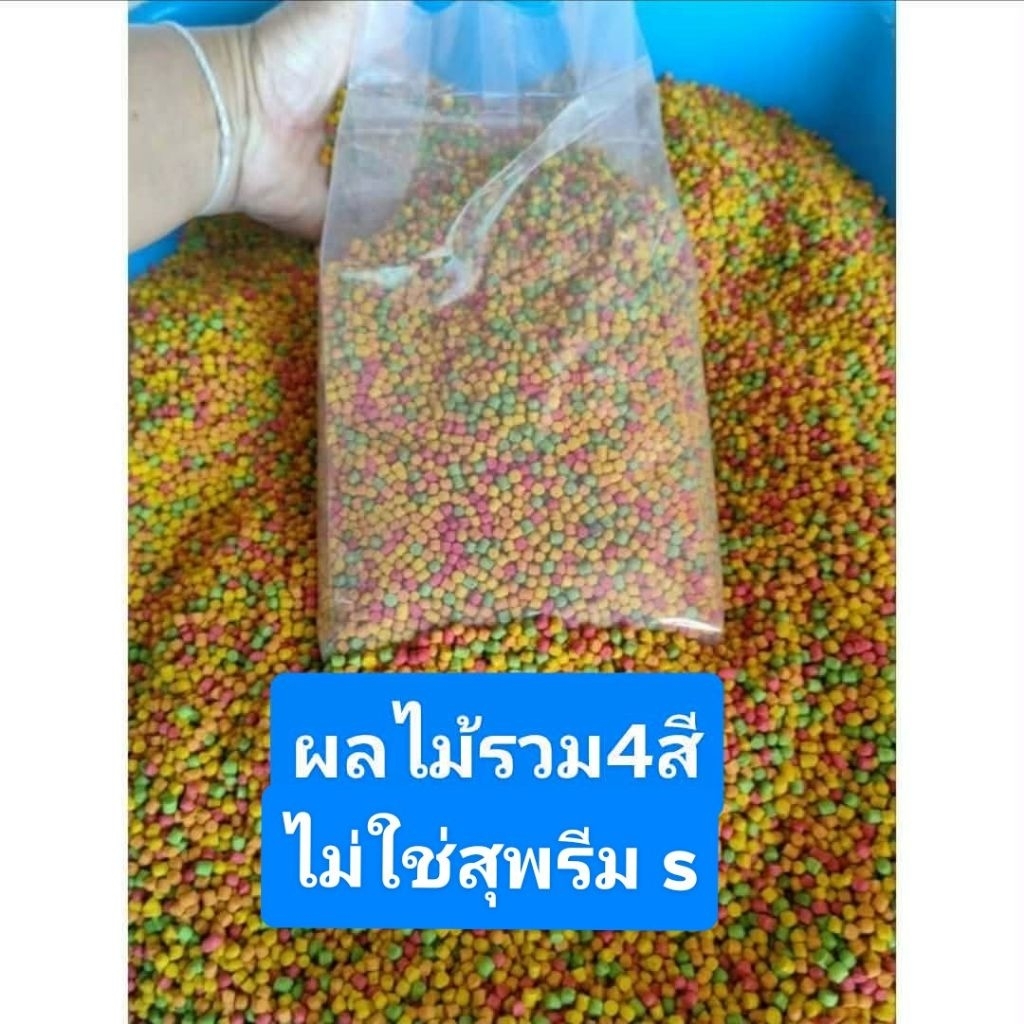 อาหารนกผลไม้รวม 4สี ขนาด 1 กิโล นกทานง่ายค่ะ เป็นอาหารที่ให้นกกินประจำทุกวัน ปรุงรสธรรมชาติ