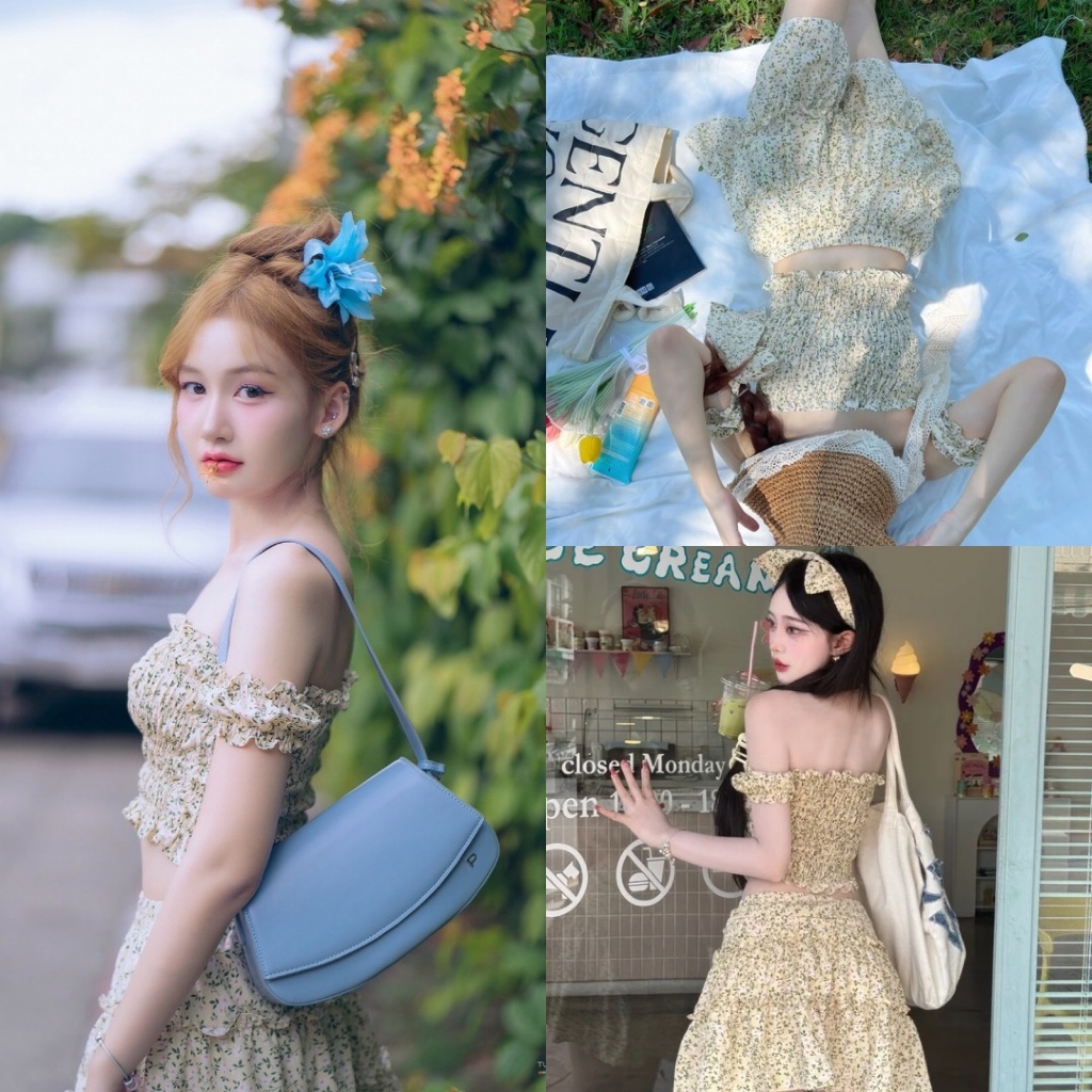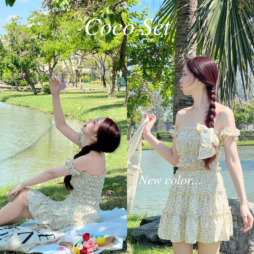 พร้อมส่ง❣️ 𝐂𝐨𝐜𝐨 𝐒𝐞𝐭 เซ็ท3ชิ้น เกาะอกแขนตุ๊กตา+กระโปรง+โบว์ผูก ชุดไปทะเล เหมาะกับซัมเมอร์นี้มาก