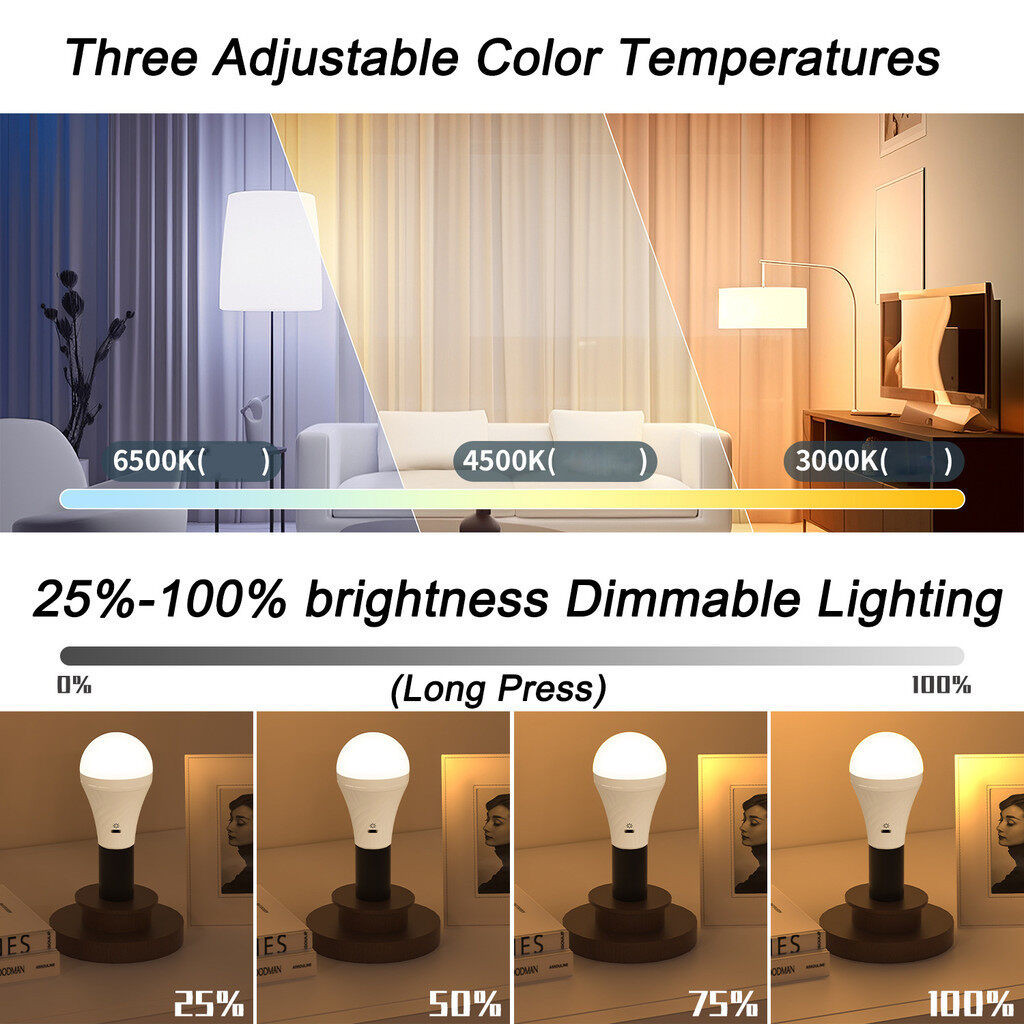 Usb-c หลอดไฟ E27 แบบชาร์จไฟได้พร้อมรีโมท Type-C Camping light 3 สีหลอดไฟ LED เต็นท์กลางแจ้งไฟฉุกเฉิน