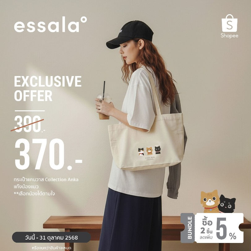 Essala กระเป๋าผ้าแคนวาส ลายน้องแมว